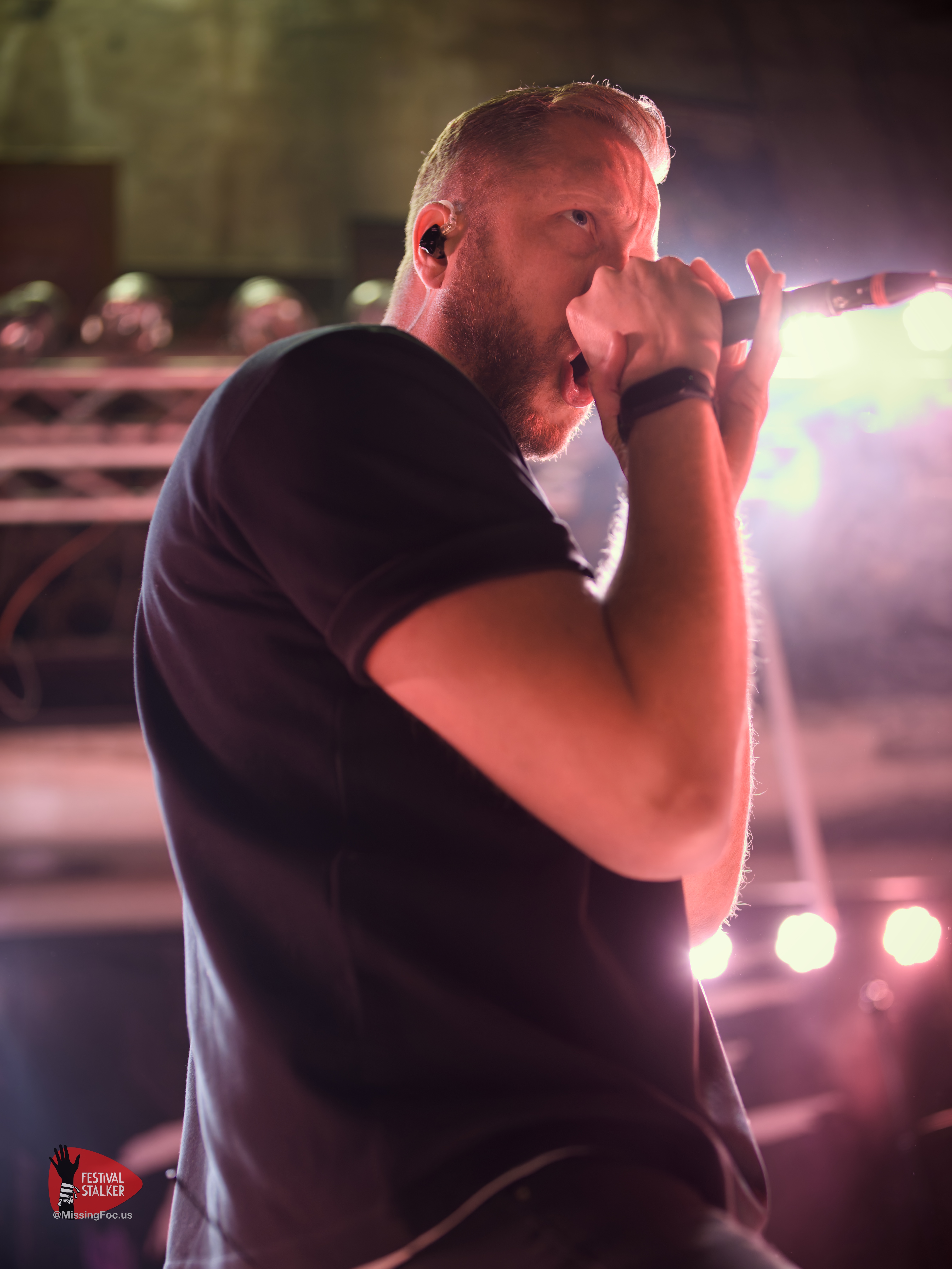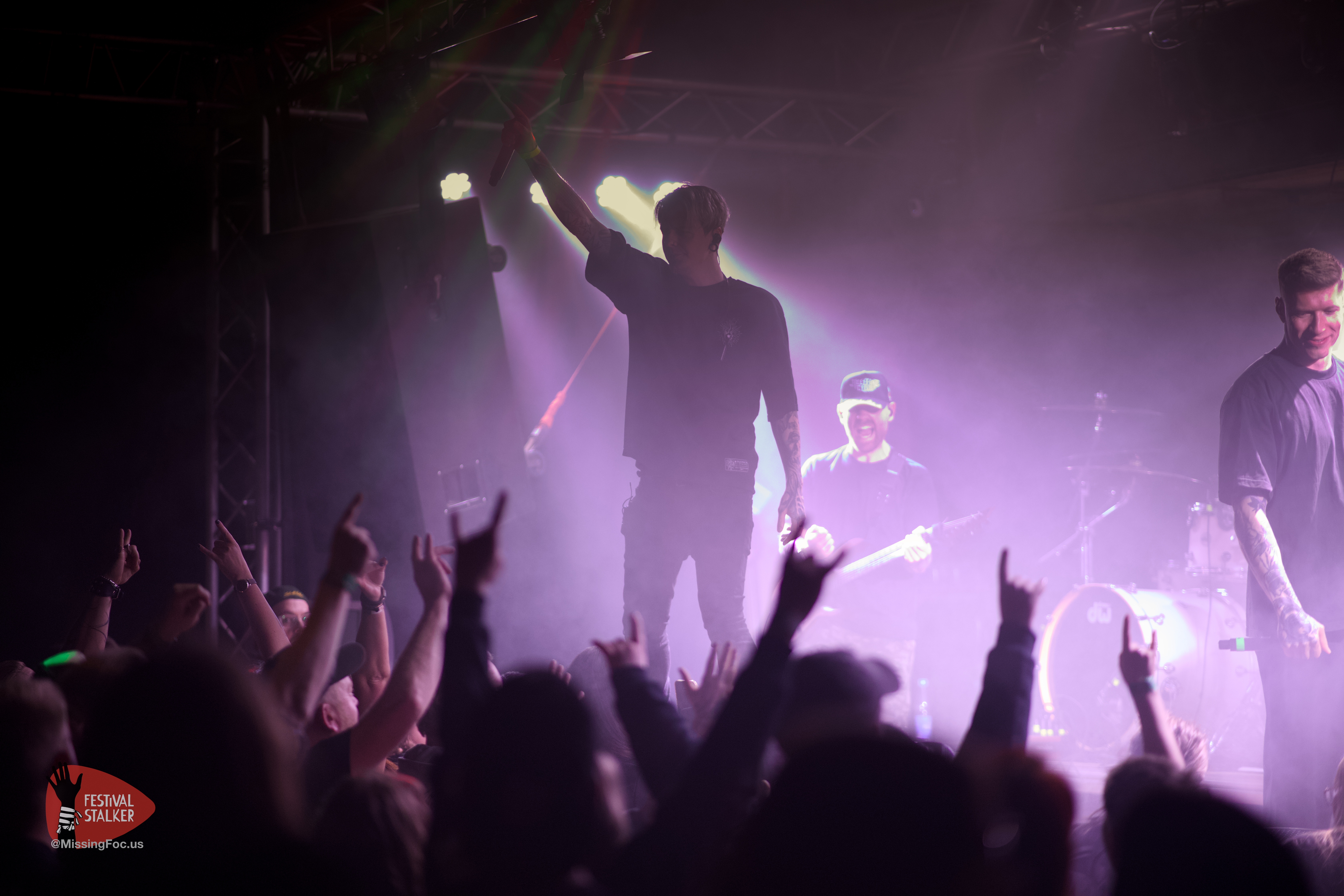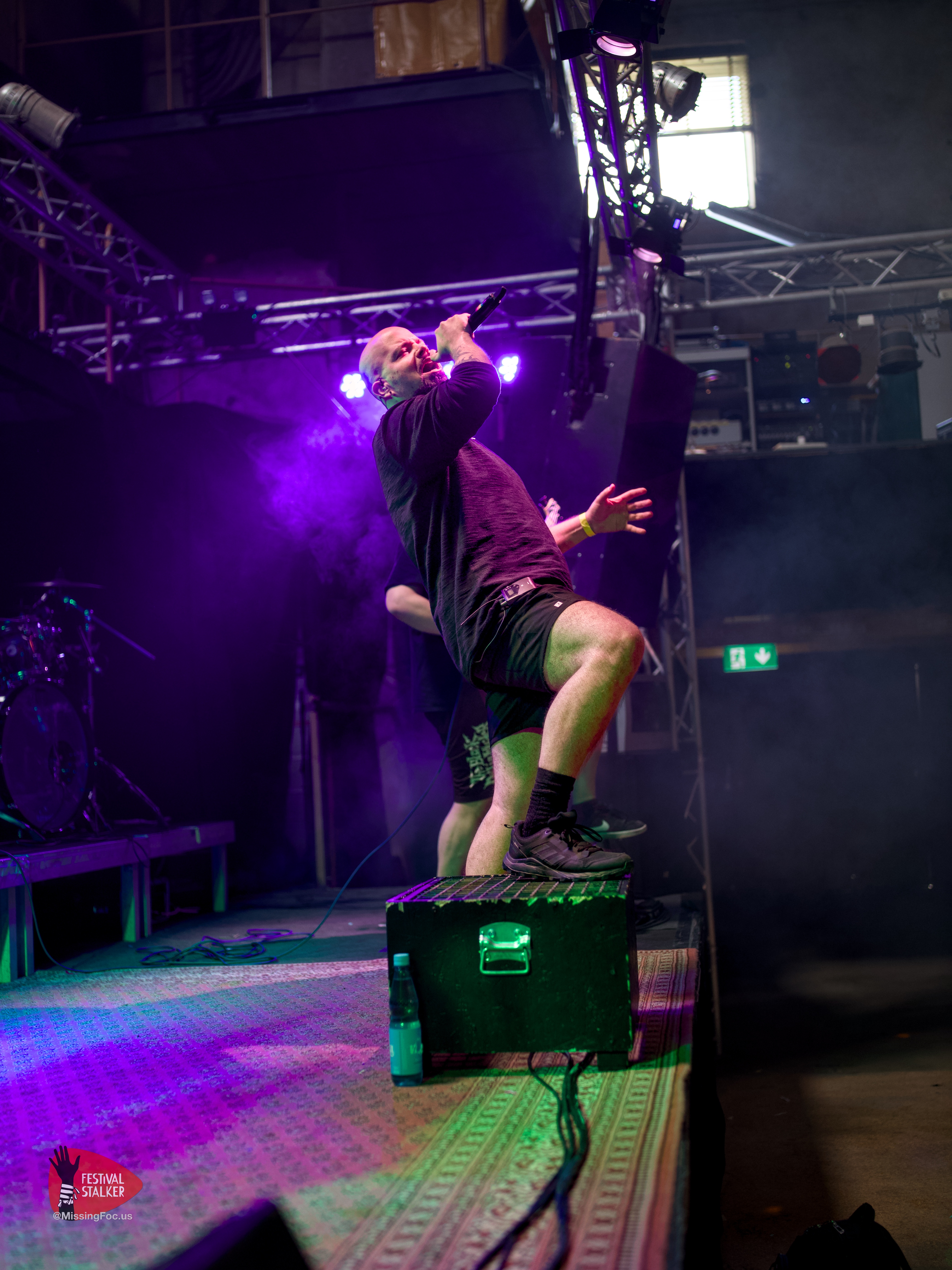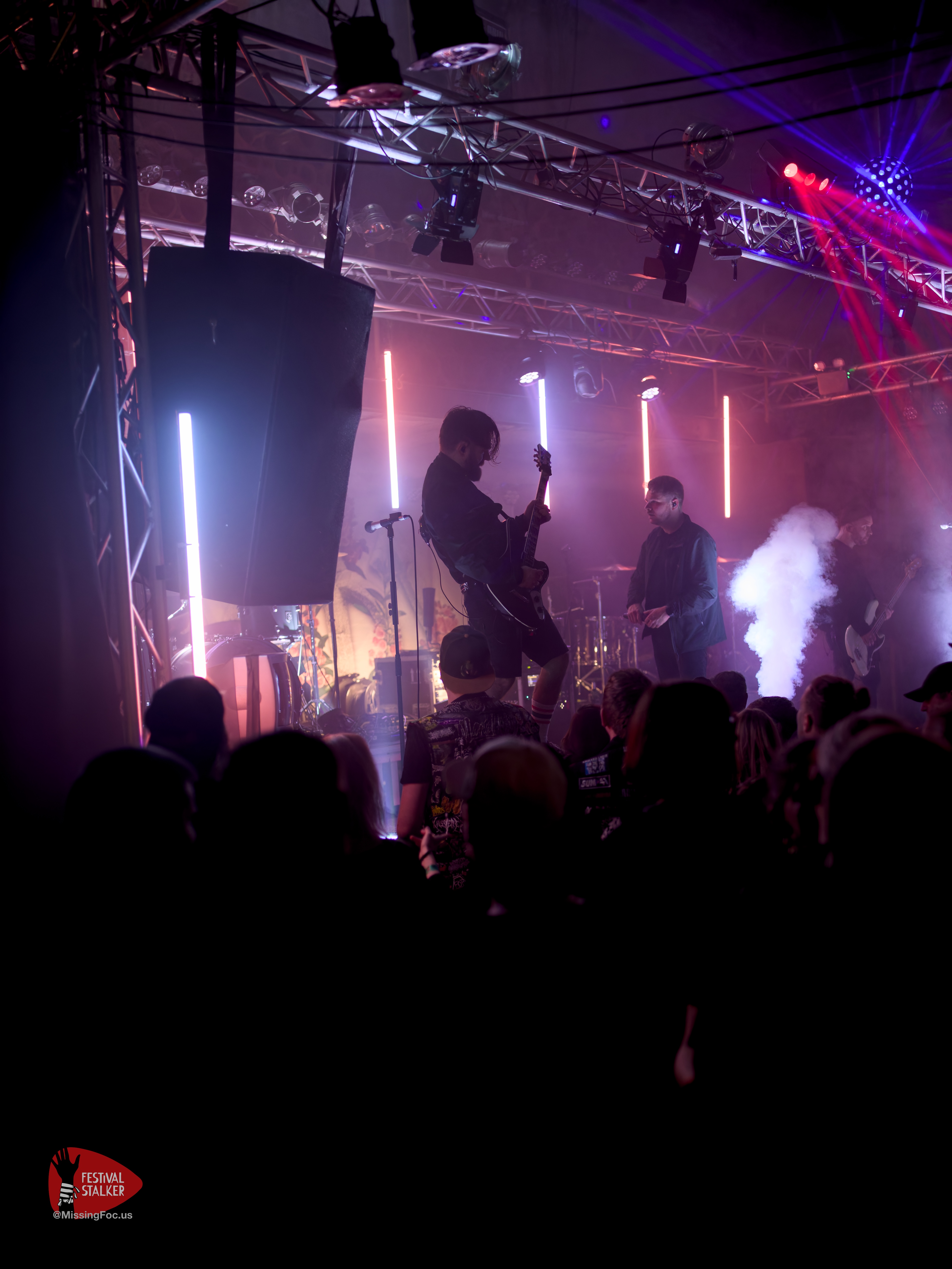 Nach einen weiteren Change Over von guten 20 Minuten betraten die Post Hardcore Veteranen von Watch Out Stampede die Bühne. Mit eigener Lichtshow sollten sie ihren Gig mehr als nur eindrucksvoll untermalen. Zwischen Nebel und Stroboskop Effekten rissen Watch Out Stampede die Bühne förmlich ab. Frontmann Peer, der auch gleichzeitig Organisator des Brickmosh 2026, lieferte kompromisslos ab. Untermalt wurde der Gig immer wieder mit der Nähe zum Publikum, denn Watch Out Stampede sind langjähriger Bestandteil des Brickmosh. Warm gespielt gab es kein Halten mehr. Mosh Pit, Circle Pit, Headbanging und kollektives Ausrasten war jetzt angesagt.