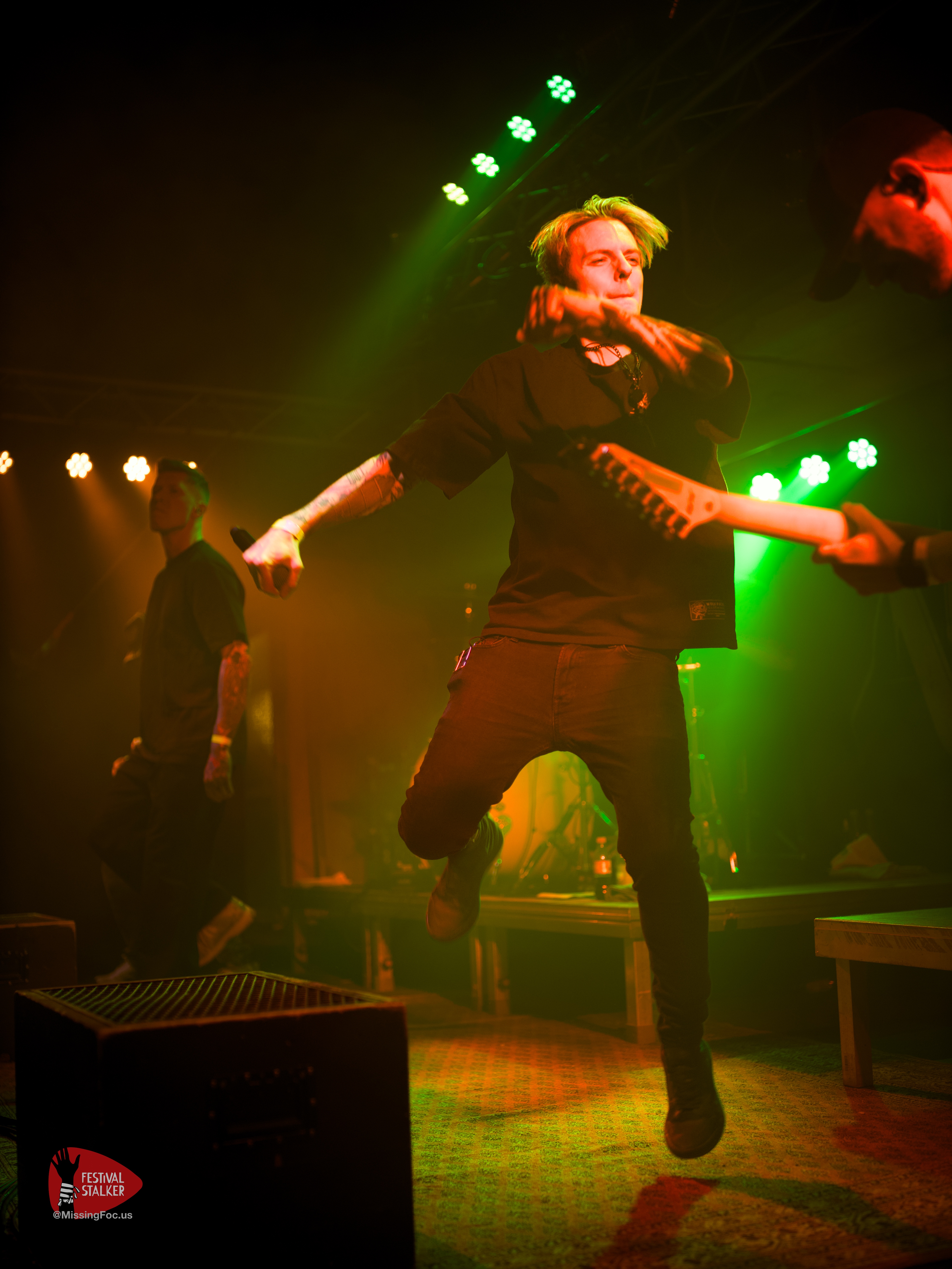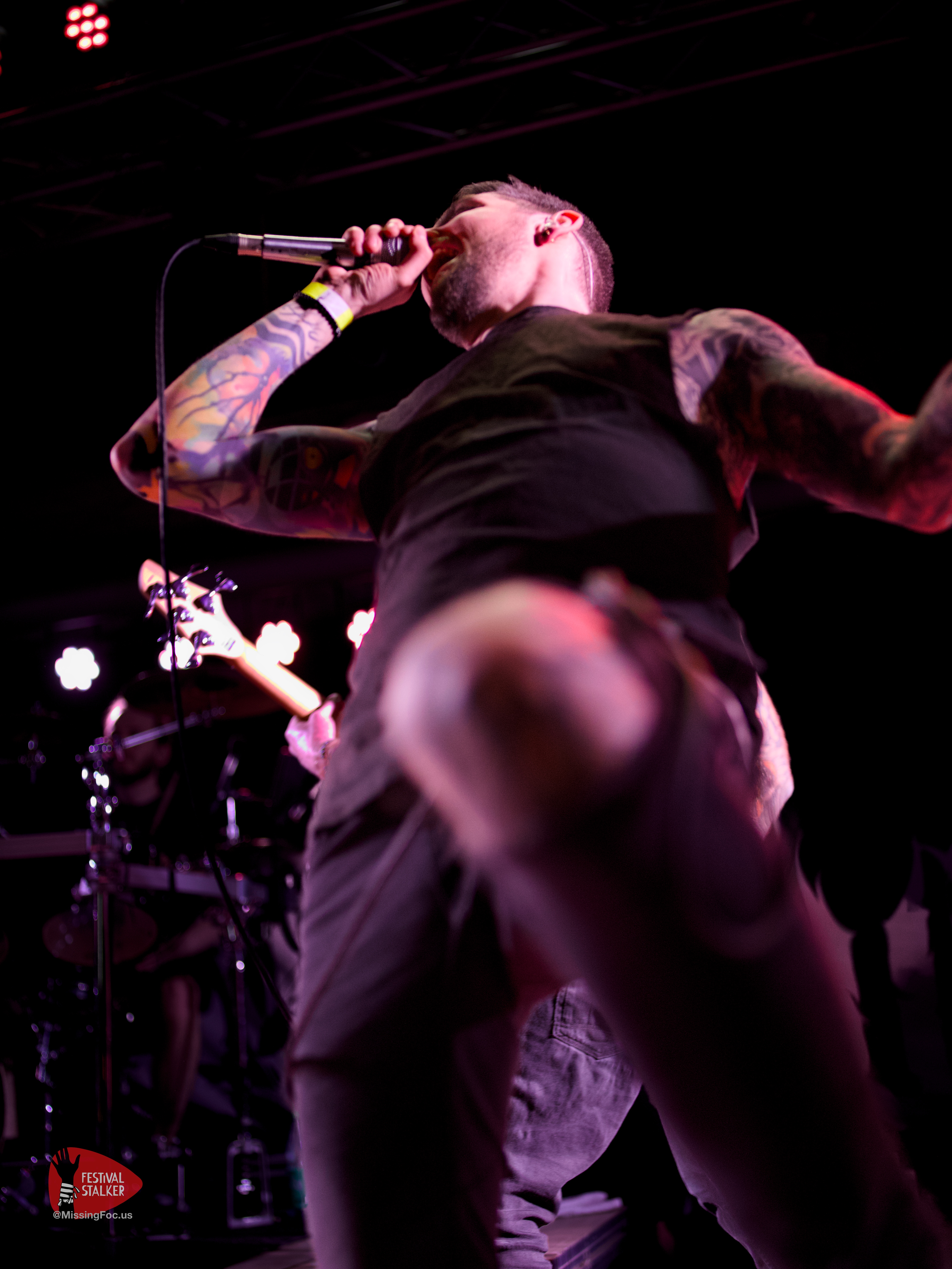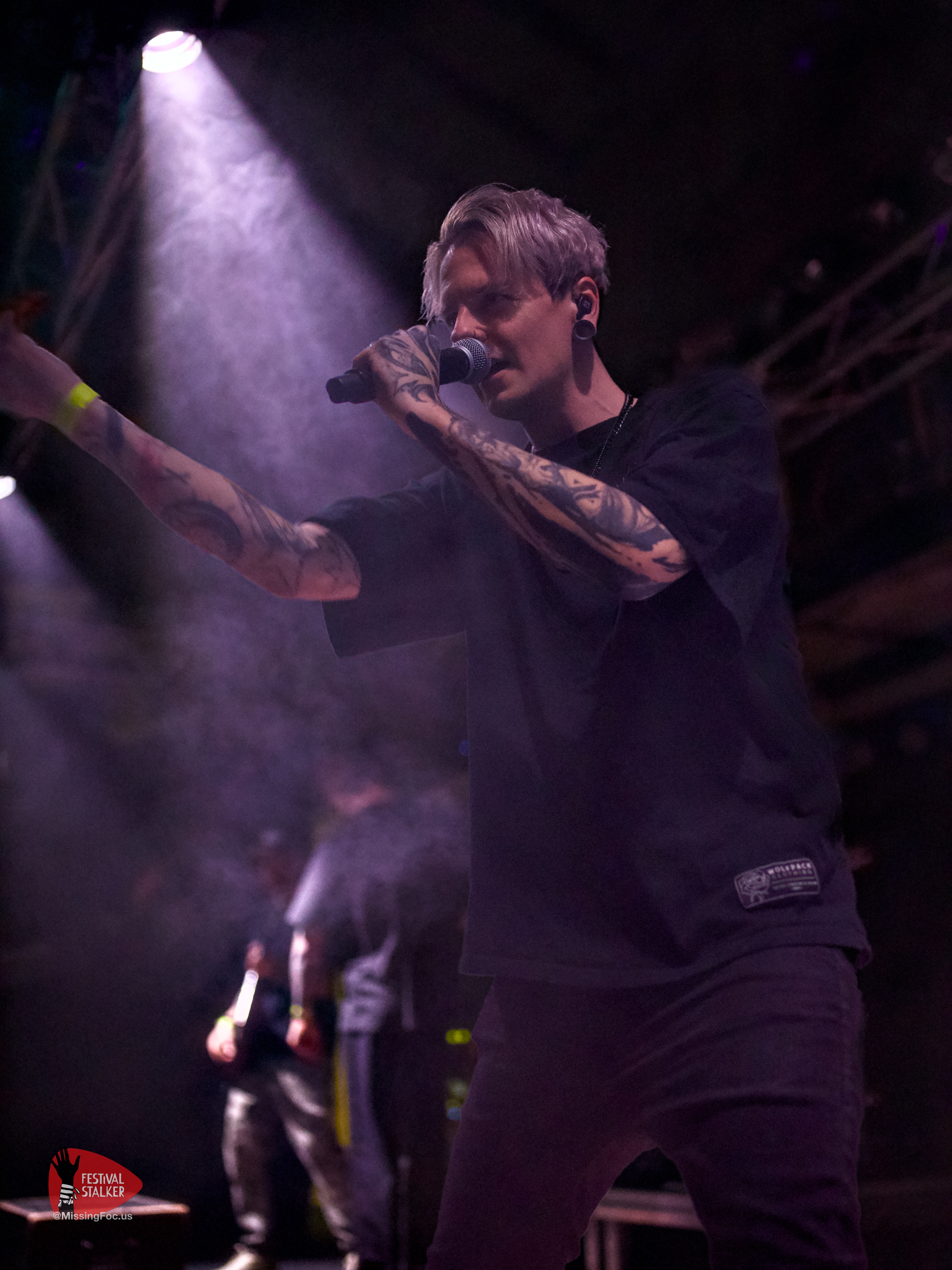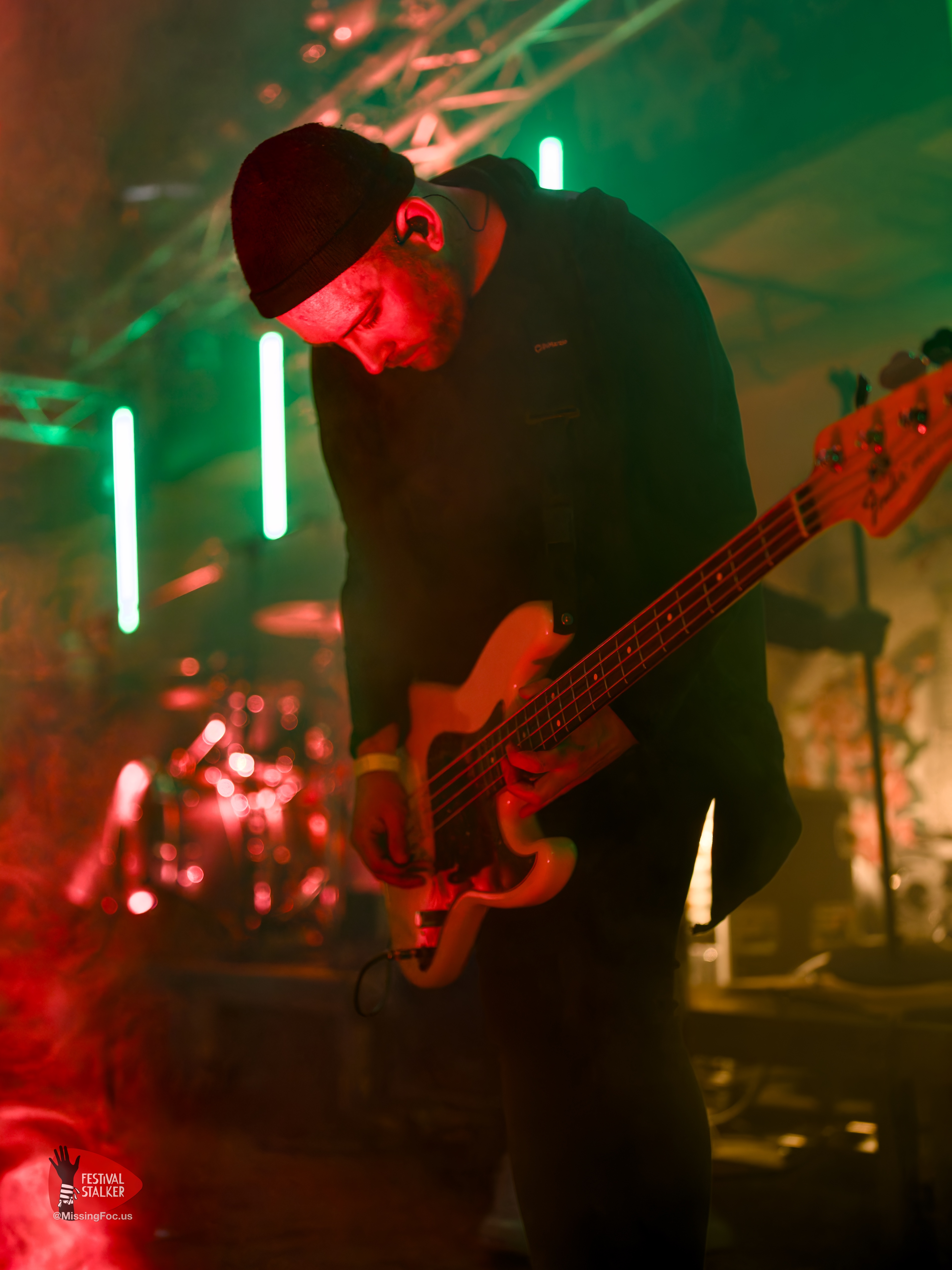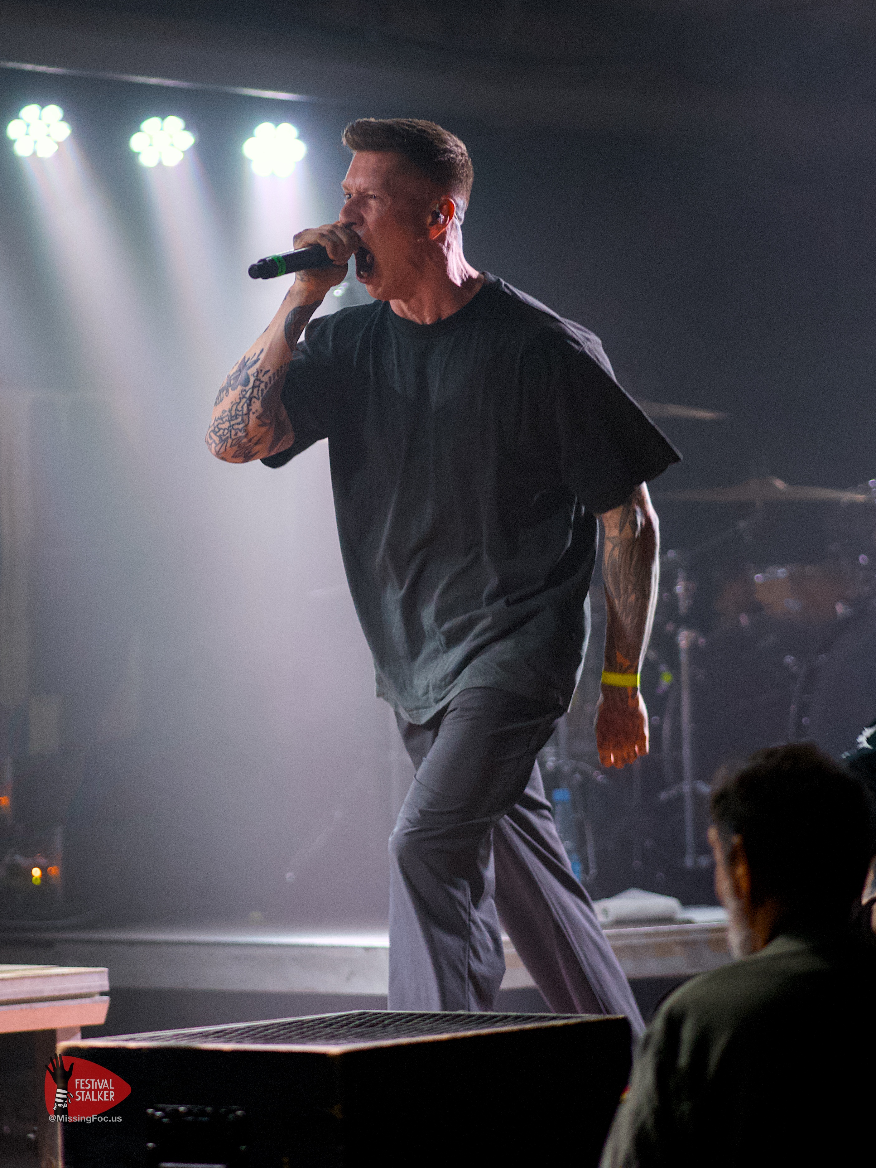 Nach einen weiteren Change Over von guten 20 Minuten betraten die Post Hardcore Veteranen von Watch Out Stampede die Bühne. Mit eigener Lichtshow sollten sie ihren Gig mehr als nur eindrucksvoll untermalen. Zwischen Nebel und Stroboskop Effekten rissen Watch Out Stampede die Bühne förmlich ab. Frontmann Peer, der auch gleichzeitig Organisator des Brickmosh 2026, lieferte kompromisslos ab. Untermalt wurde der Gig immer wieder mit der Nähe zum Publikum, denn Watch Out Stampede sind langjähriger Bestandteil des Brickmosh. Warm gespielt gab es kein Halten mehr. Mosh Pit, Circle Pit, Headbanging und kollektives Ausrasten war jetzt angesagt.