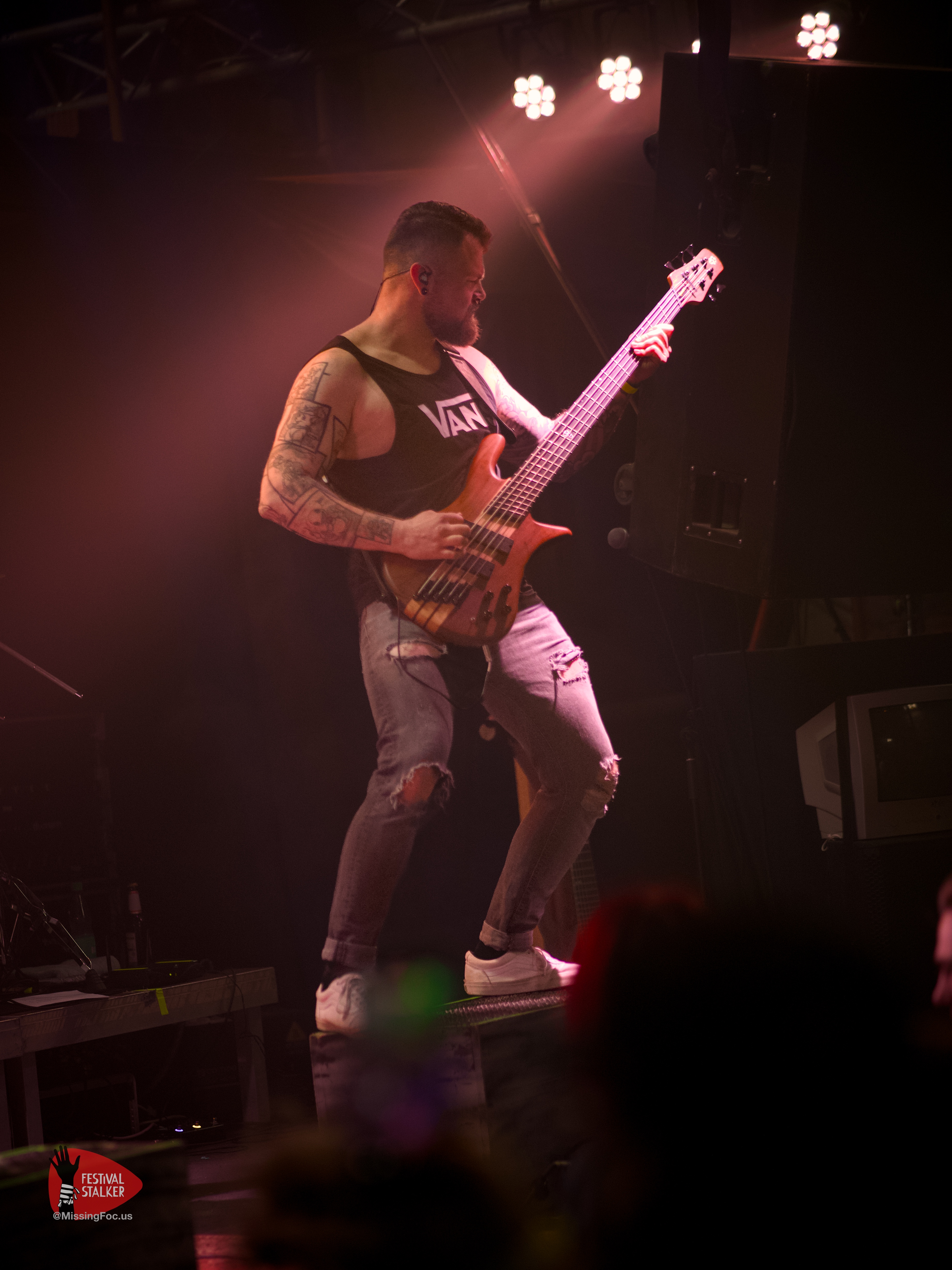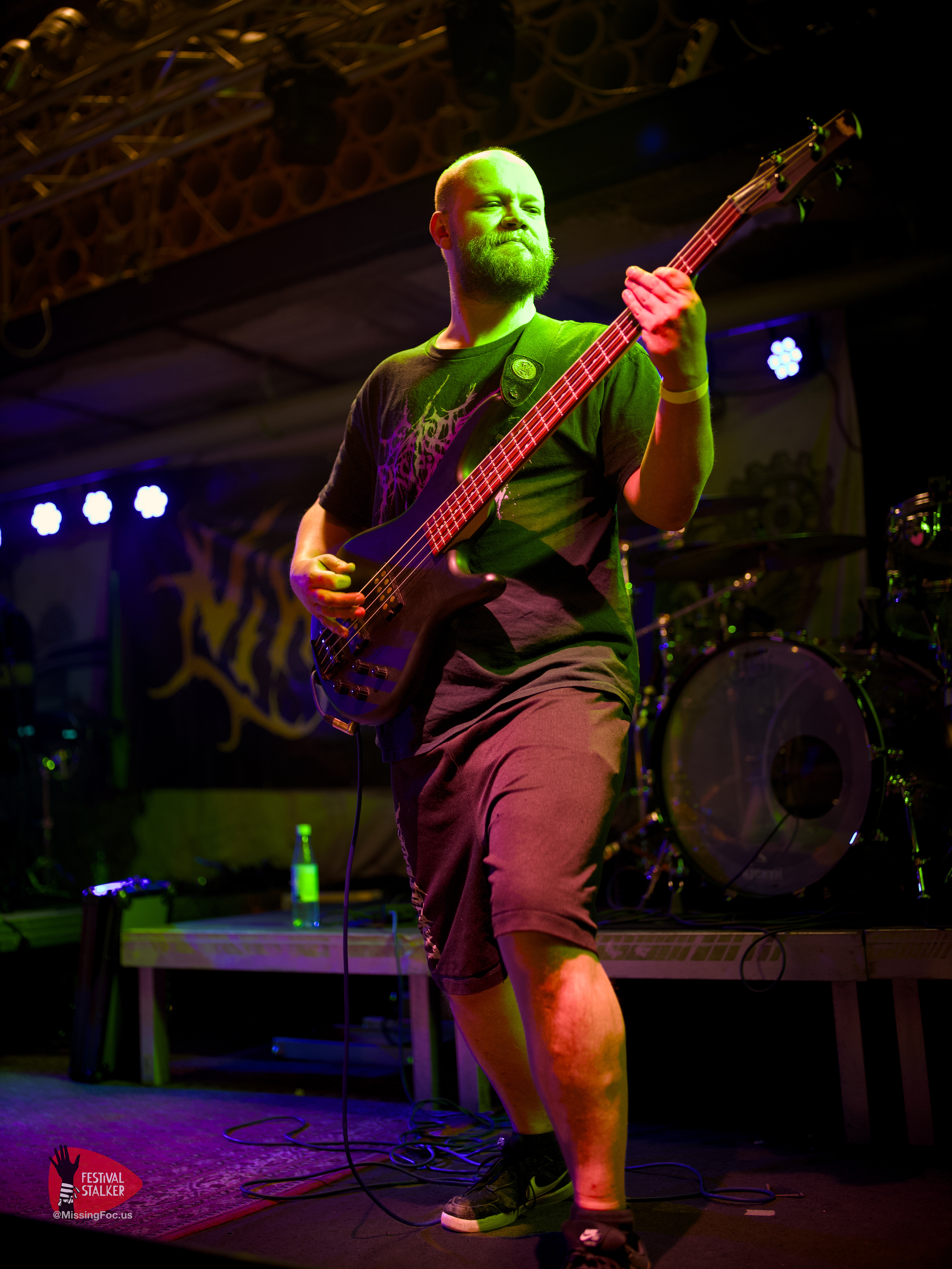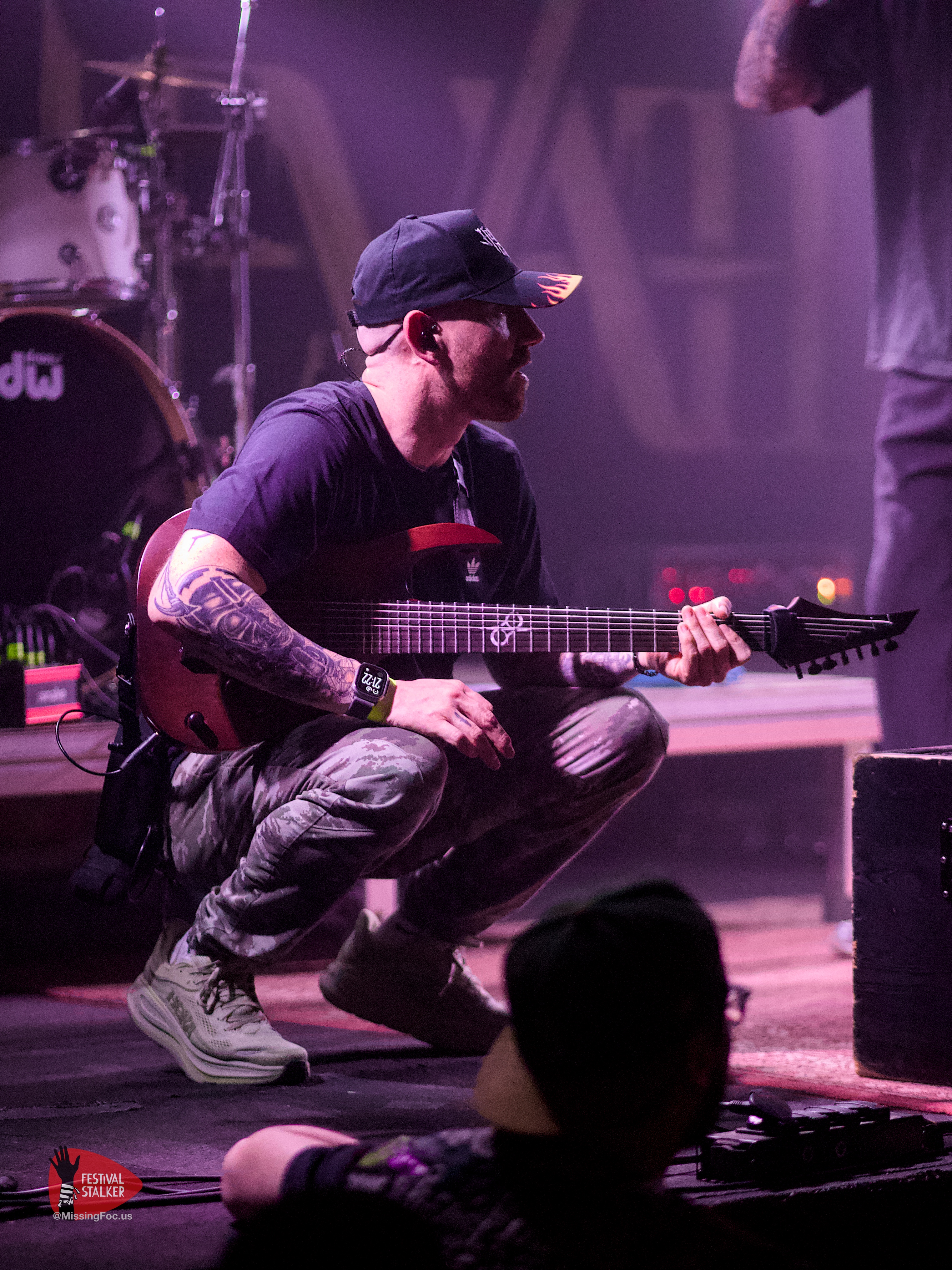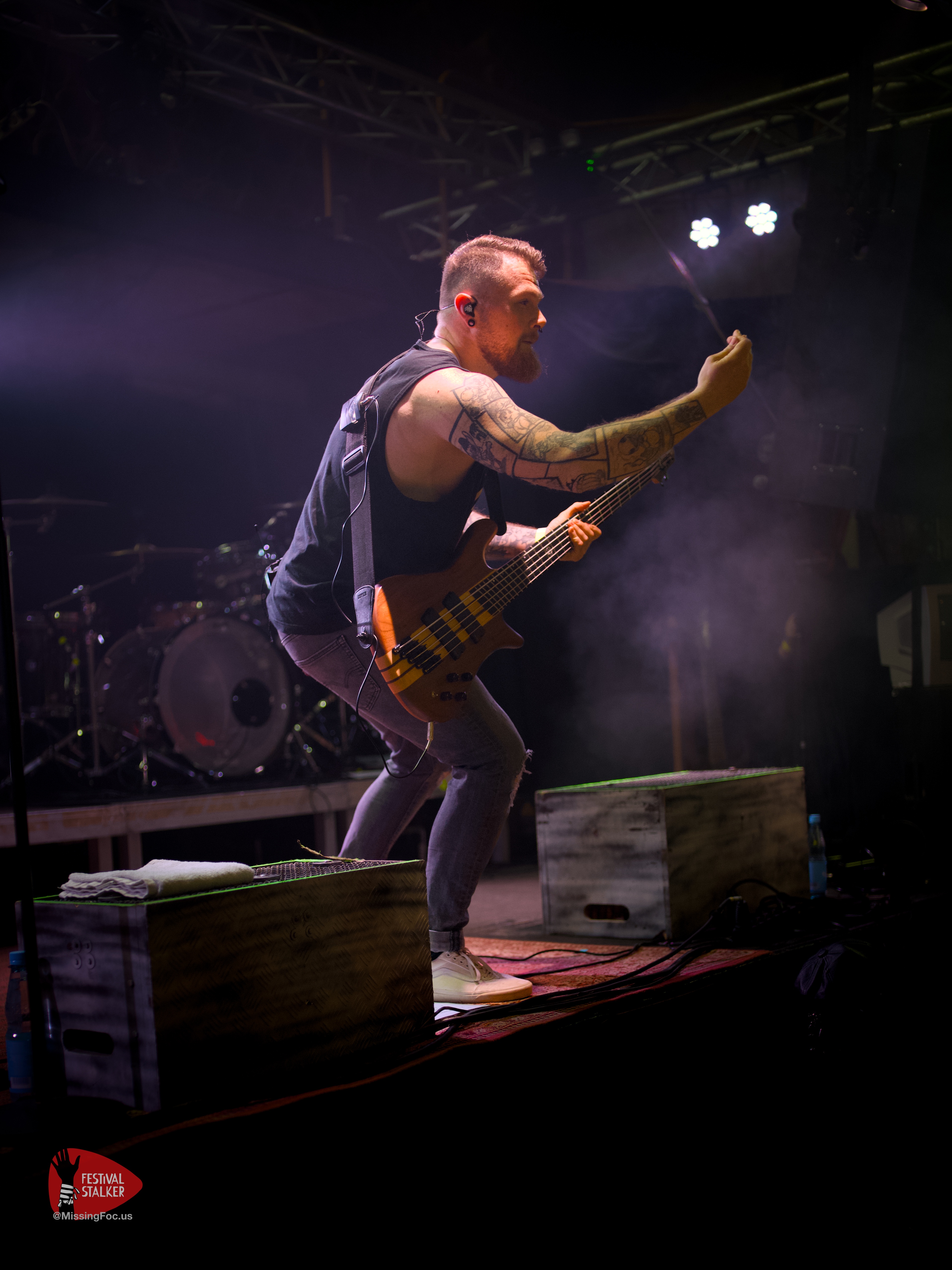 Nach einen weiteren Change Over von guten 20 Minuten betraten die Post Hardcore Veteranen von Watch Out Stampede die Bühne. Mit eigener Lichtshow sollten sie ihren Gig mehr als nur eindrucksvoll untermalen. Zwischen Nebel und Stroboskop Effekten rissen Watch Out Stampede die Bühne förmlich ab. Frontmann Peer, der auch gleichzeitig Organisator des Brickmosh 2026, lieferte kompromisslos ab. Untermalt wurde der Gig immer wieder mit der Nähe zum Publikum, denn Watch Out Stampede sind langjähriger Bestandteil des Brickmosh. Warm gespielt gab es kein Halten mehr. Mosh Pit, Circle Pit, Headbanging und kollektives Ausrasten war jetzt angesagt.