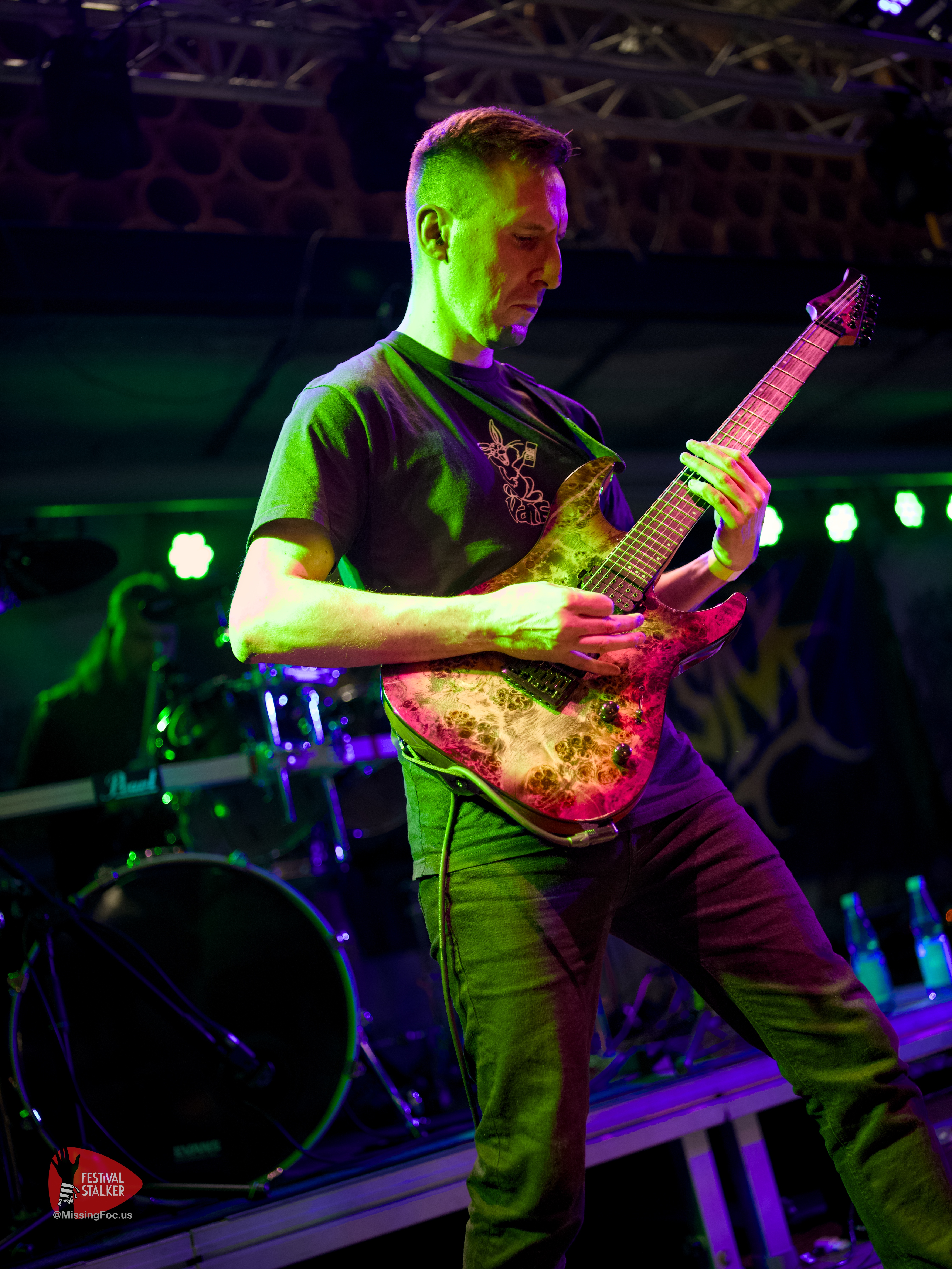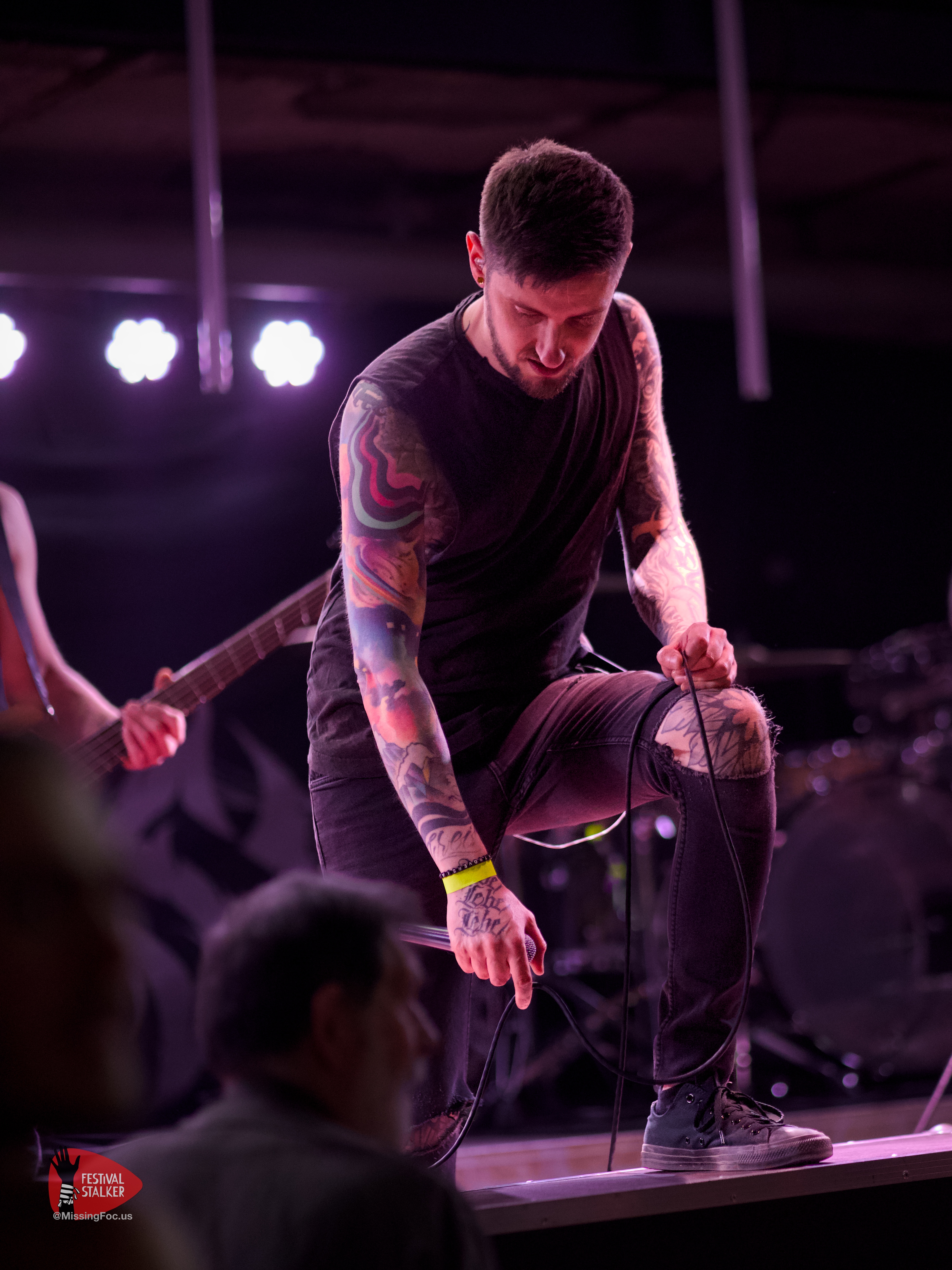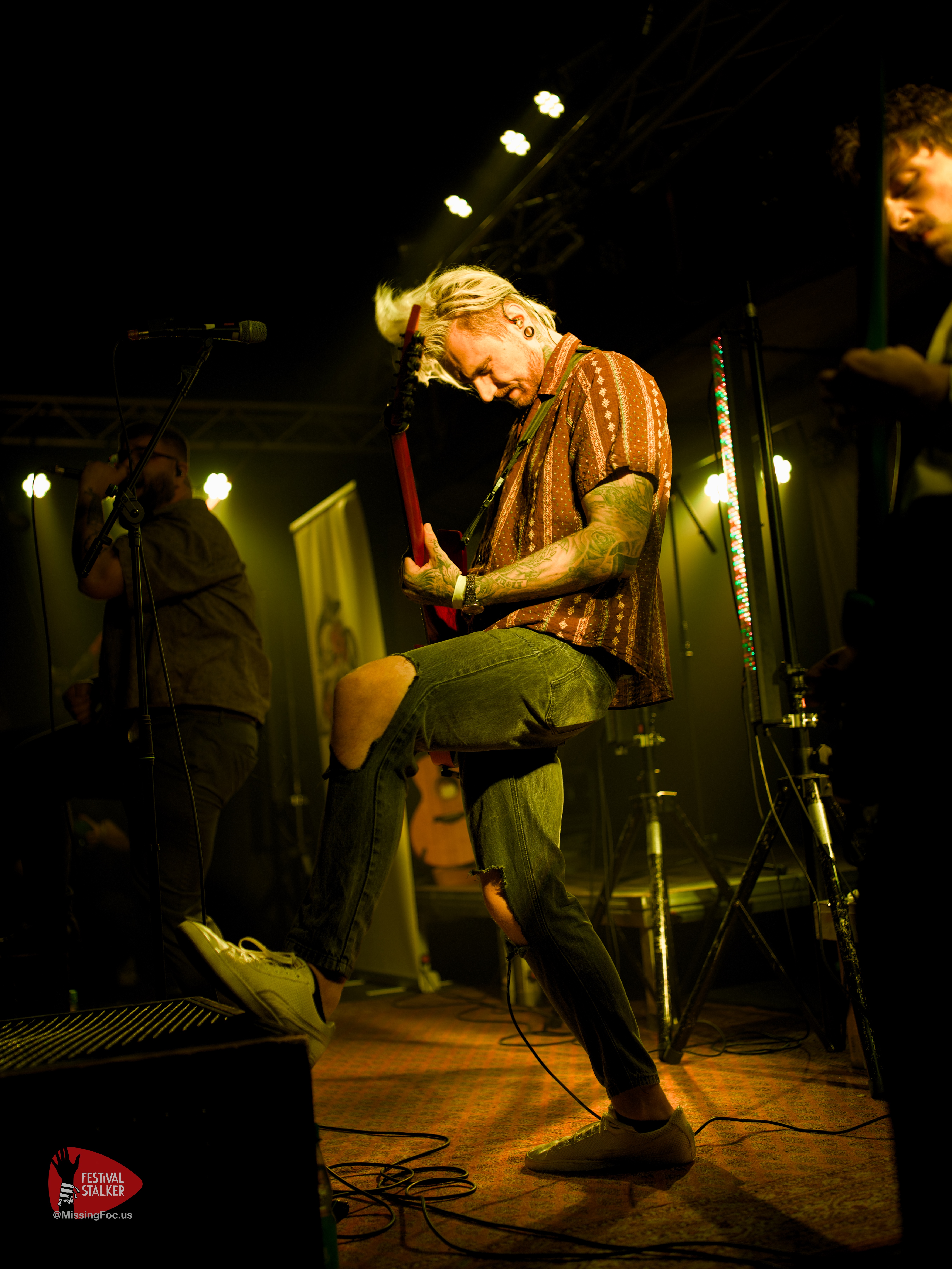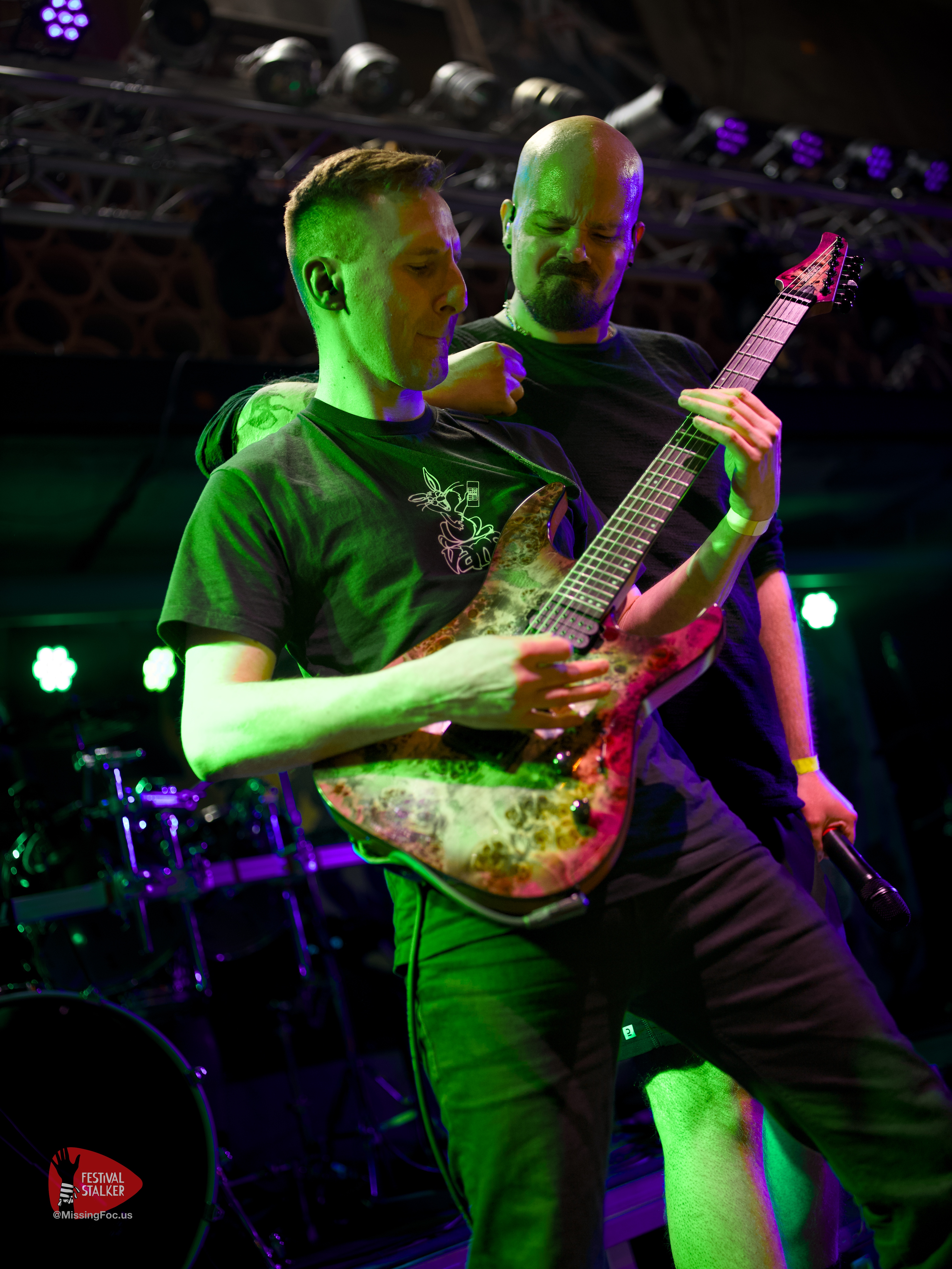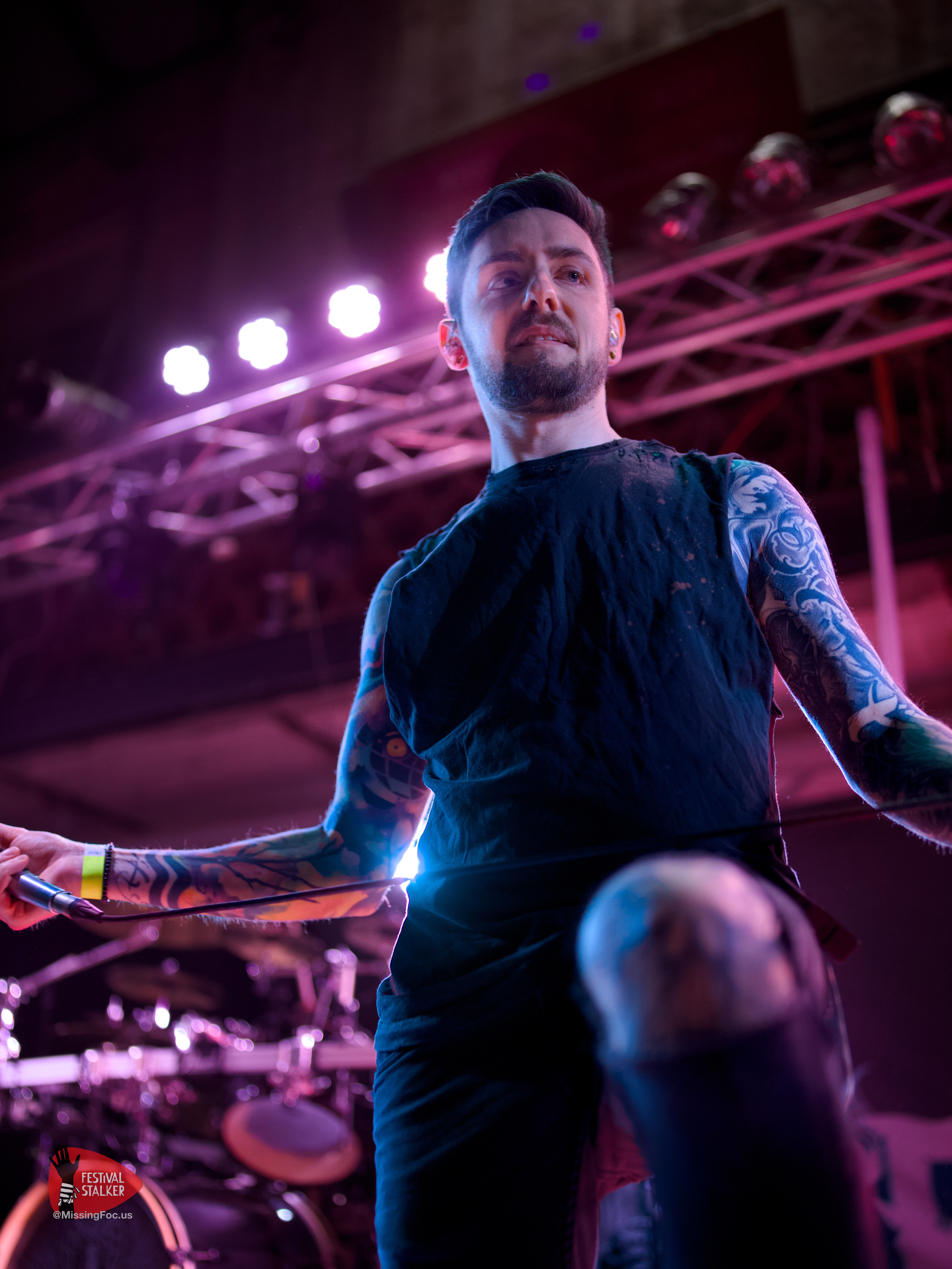 Nach einen weiteren Change Over von guten 20 Minuten betraten die Post Hardcore Veteranen von Watch Out Stampede die Bühne. Mit eigener Lichtshow sollten sie ihren Gig mehr als nur eindrucksvoll untermalen. Zwischen Nebel und Stroboskop Effekten rissen Watch Out Stampede die Bühne förmlich ab. Frontmann Peer, der auch gleichzeitig Organisator des Brickmosh 2026, lieferte kompromisslos ab. Untermalt wurde der Gig immer wieder mit der Nähe zum Publikum, denn Watch Out Stampede sind langjähriger Bestandteil des Brickmosh. Warm gespielt gab es kein Halten mehr. Mosh Pit, Circle Pit, Headbanging und kollektives Ausrasten war jetzt angesagt.
