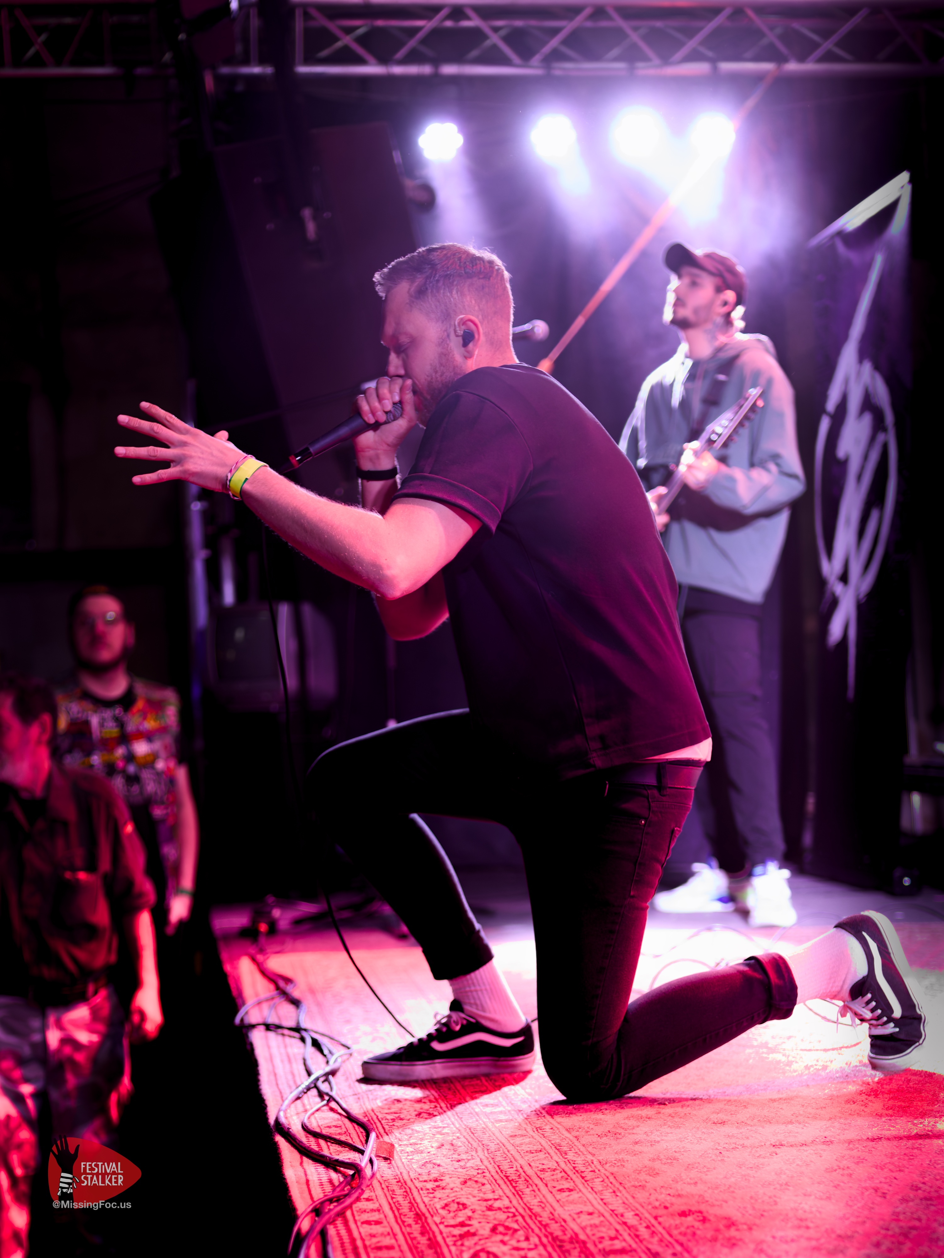 Es ist nun 22 Uhr und Zeit für den Headliner und Höhepunkt des Brickmosh 2026 Maelfoy. Kaum auf der Bühne legen die Jungs aus Ganderkesee bei Bremen direkt los. Bekannt für ihren melodischen Parts gepaart mit den aggressiven Elementen aus dem Core begeistern die Jungs sofort das Publikum. Selbst eine Saite musste sich dem energetischen Spiel geschlagen geben. Scherzhaft fügte Sänger Marne an dass diese Saite überbewertet wird. Das Maelfoy auch ruhig, nahezu sanft können bewies Marne mit seiner Akustikgitarre. Maelfoy sollten 60 Minuten lang die letzten Energiereserven aus dem Publikum hervor locken. Ein letzten mal zu Springen, zu moshen und die Haare kreisen zu lassen zu den Screams und den Riffs der Gitarren. Die alten Mauern der Ziegelei mussten den Abend Höchstleistung bringen um nicht einzustürzen.