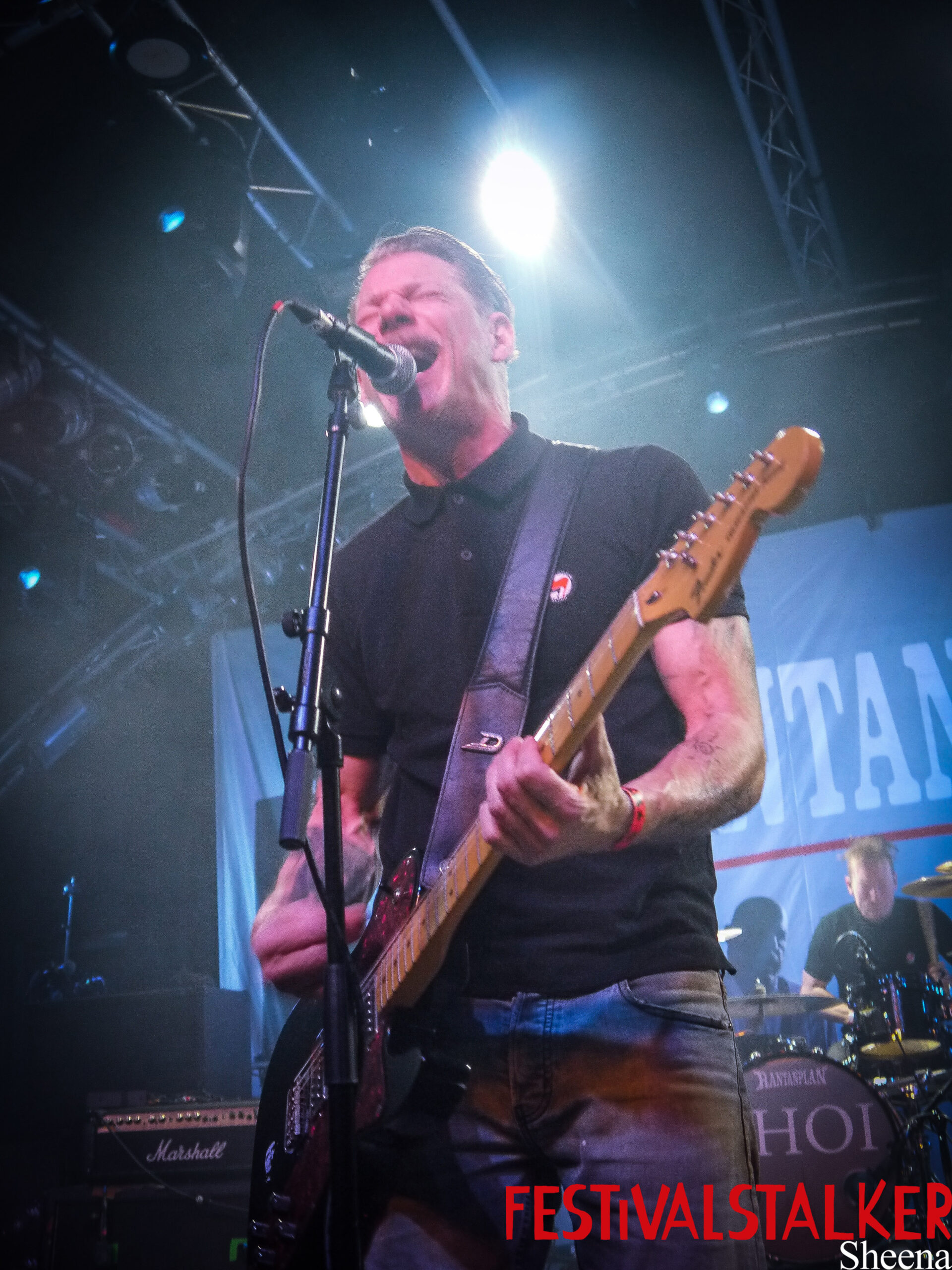 Weiter ging es dann mit den Hamburger Urgesteinen Rantanplan. Diese hatten erst am Vorabend ihr neues Album „Ahoi“ via Hamburg Records veröffentlicht hatten. Sie gaben ein Potpourri aus neuen Songs und wirklichen Klassikern zum Besten. Direkt zu Beginn hauten sie bereits ihren Hit „Stay Rudel – Stay Rebel“ raus und die gesamte Halle konnte mitgröhlen. Mich persönlich hat einfach schon dieser atemberaubende 4 Mann und Frau starke Bläsersatz umgehauen! Doch es gibt auch immer wieder ruhige Momente zwischendurch, zum Beispiel bei „Staub“. Vom neuen Album „Ahoi“ wurde unter anderem „Ozeanische Liebe“ gespielt und natürlich fehlte auch „Wir sind nicht die Onkelz“ an diesem Abend nicht. Wirklich lustig wurde es dann bei „Unbekanntes Pferd“. Der Trompeter wurde vom Bassisten Huckepack genommen, nachdem zuvor auch bereits das Mikro so hoch gestellt wurde. Im Publikum bilden sich ebenfalls solche „Pferde“ und dann wird der gesamte Song auch so Huckepack performt. Wirklich einzigartig machte diesen Auftritt von Rantanplan auch die Spielzeit. Selten hat eine „Vorband“ direkt eine ganze Stunde lang die Halle in Bewegung gesetzt.