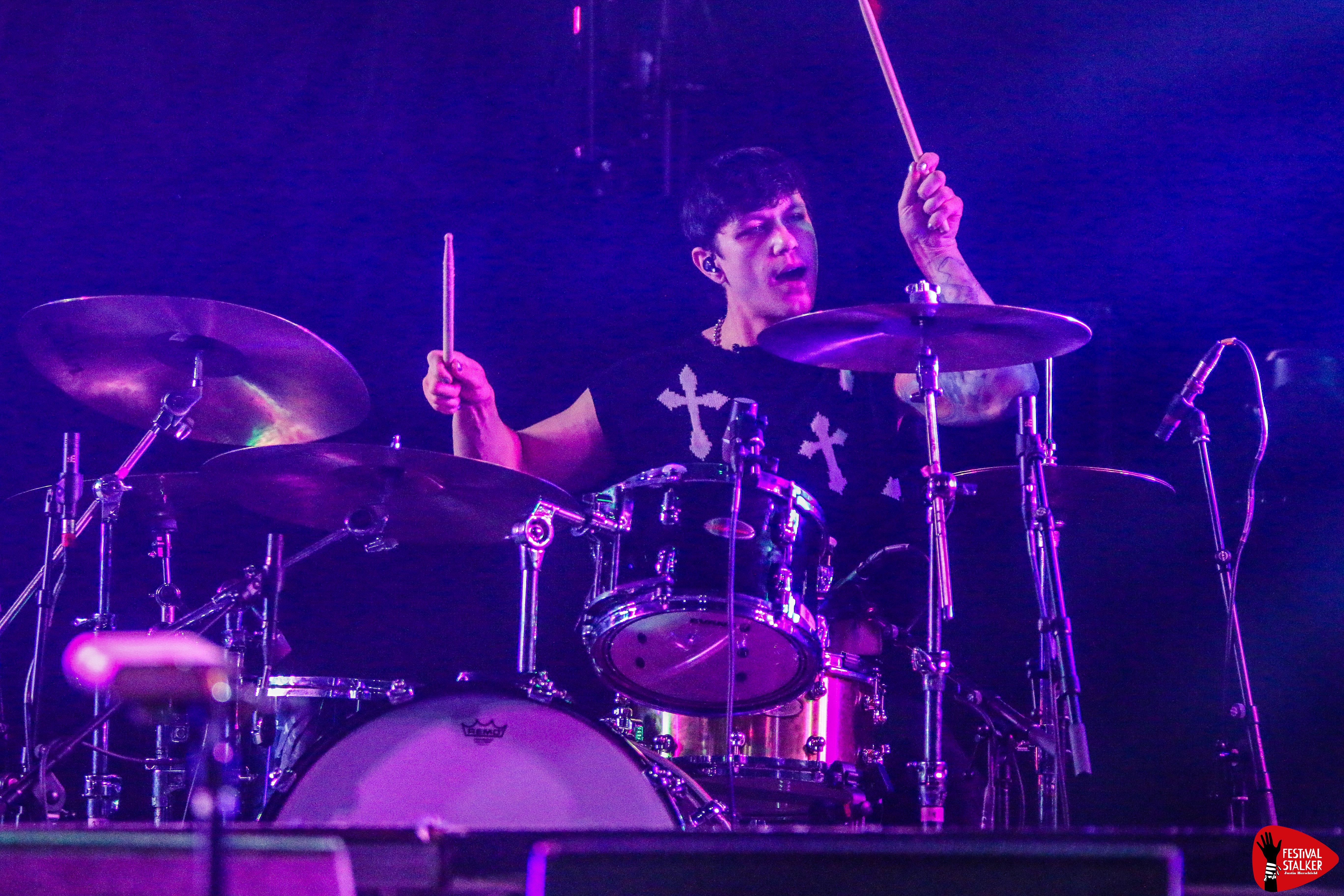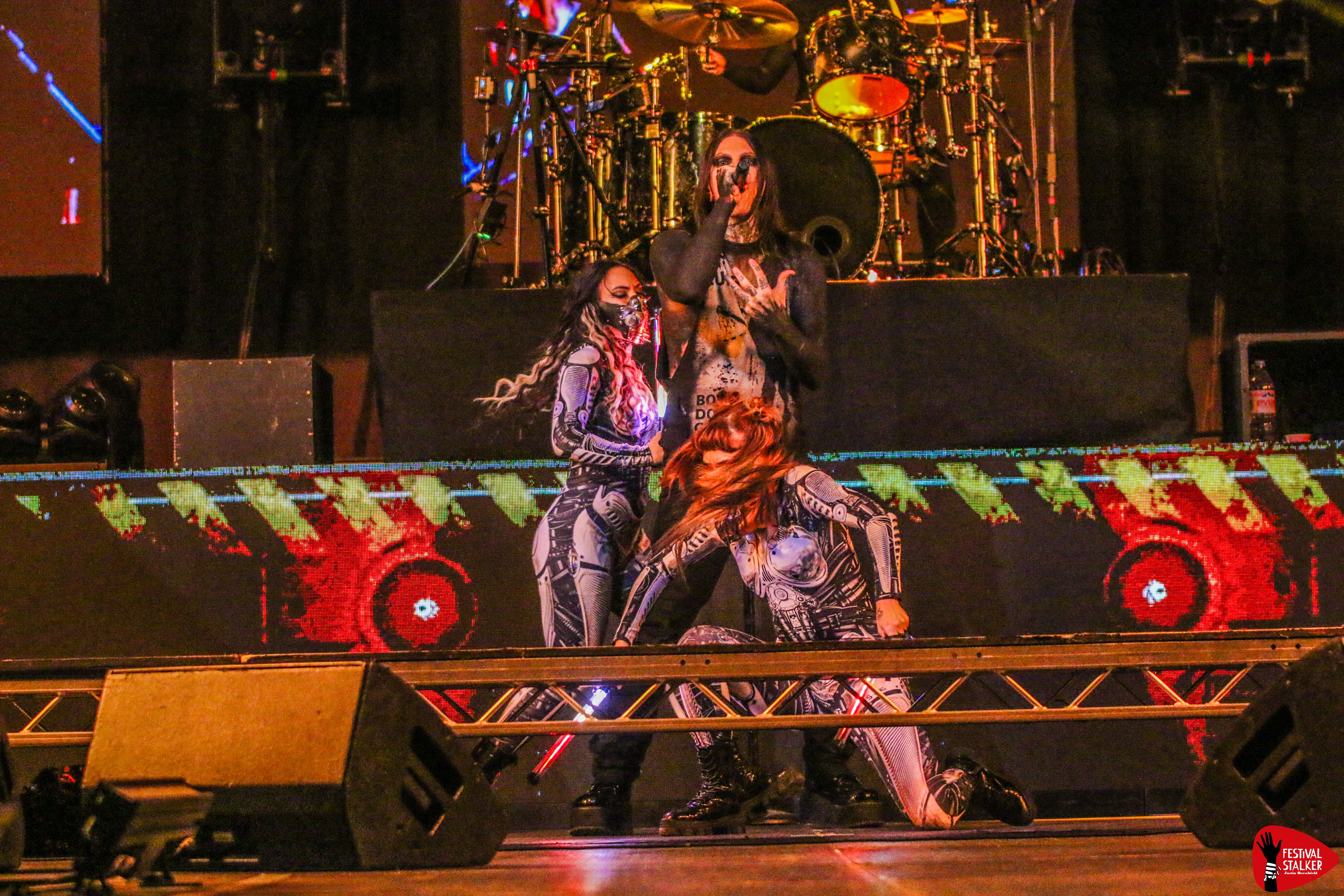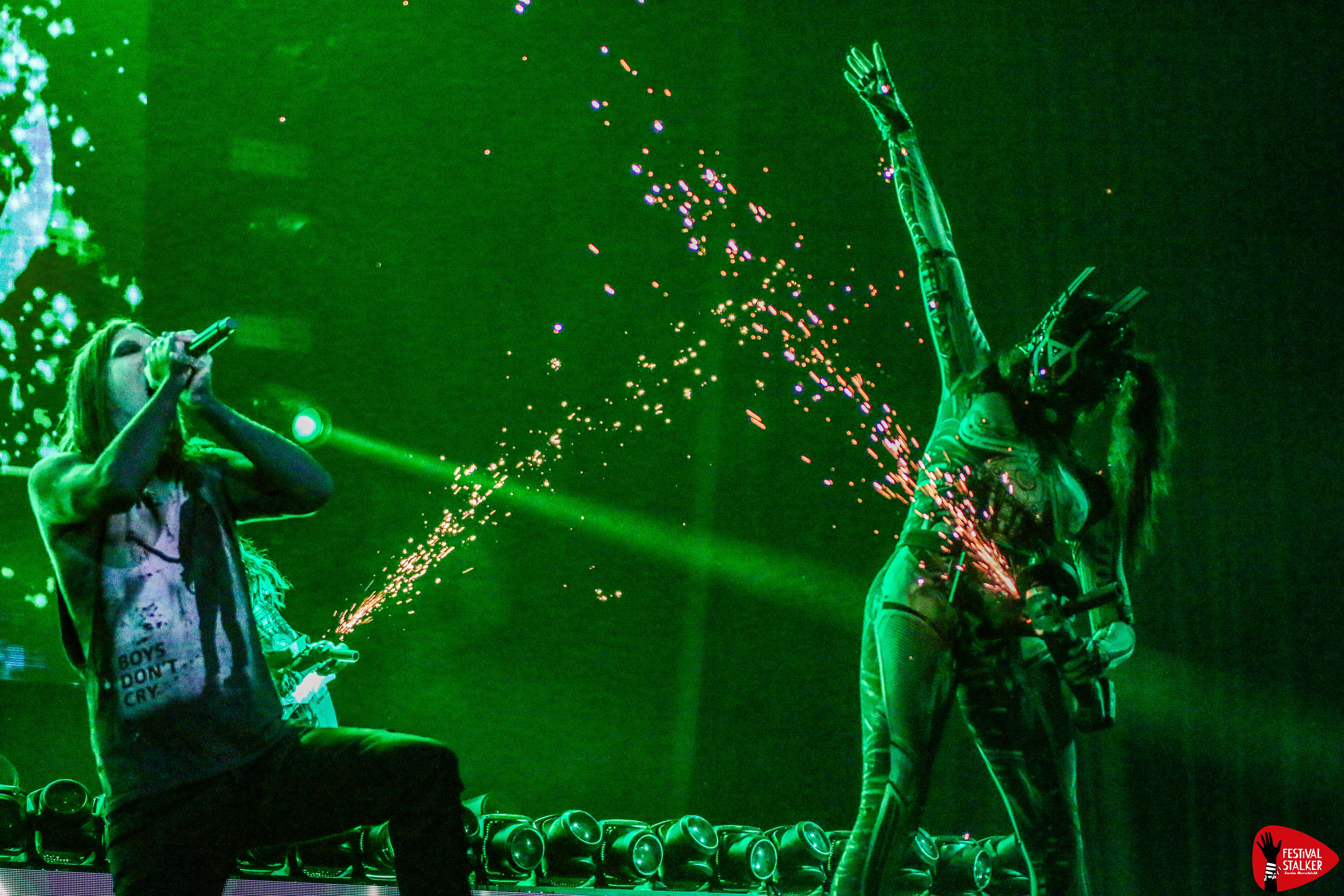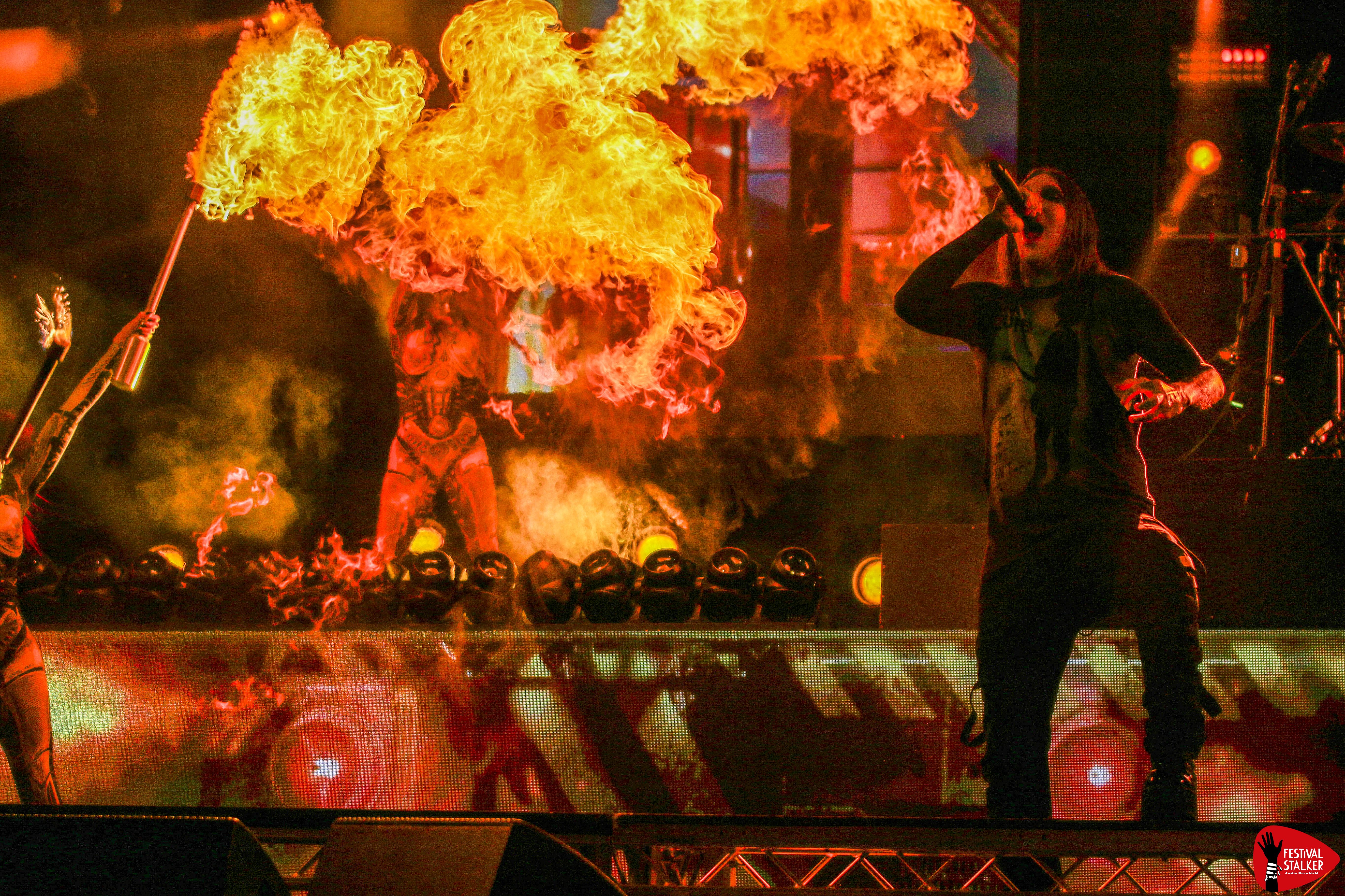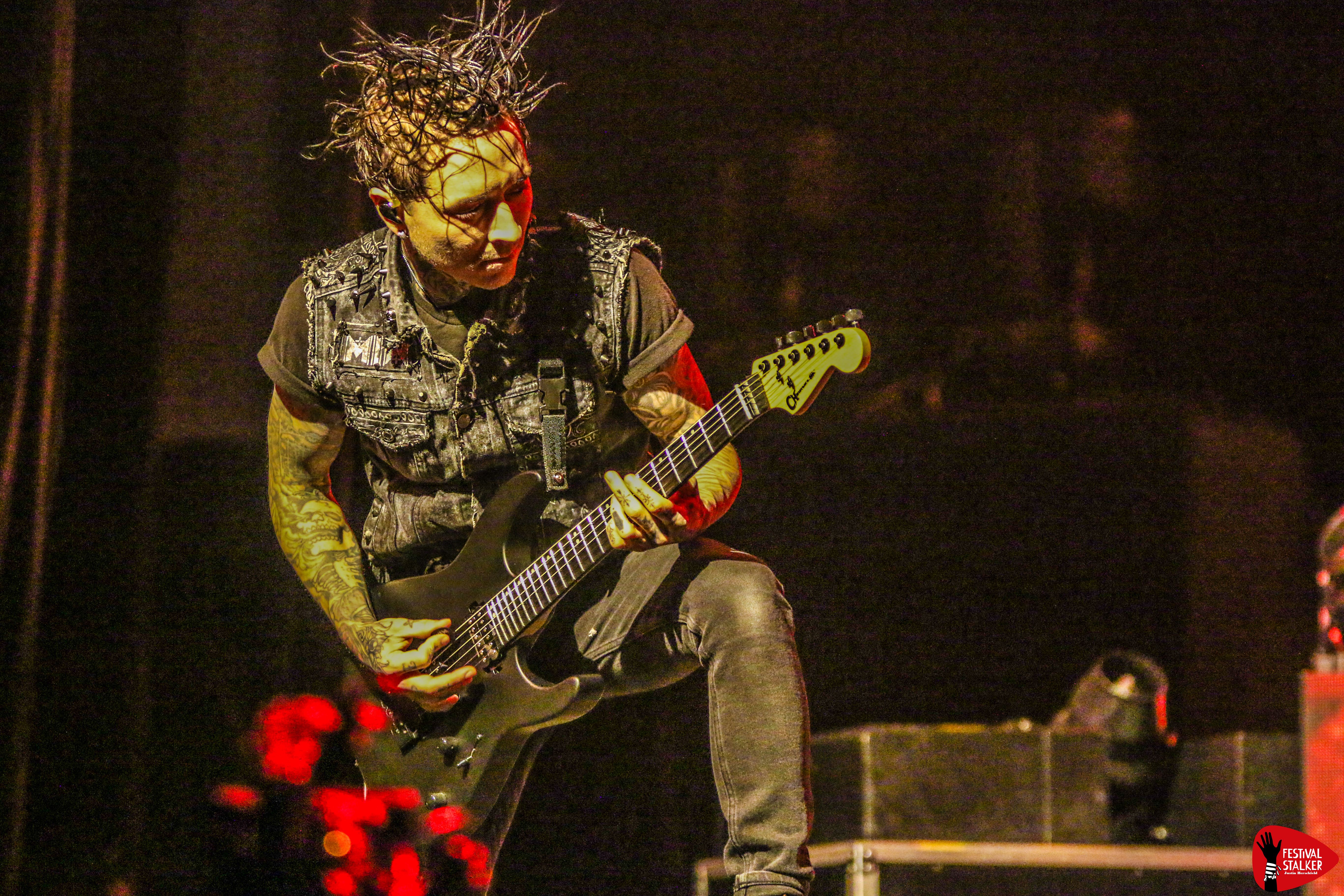 Schon mit dem brachialen Opener „Meltdown“ machten Motionless In White klar, wohin die Reise geht: kompromisslos nach vorne. Sänger Chris Motionless betrat unter tosendem Applaus die Bühne – ganz in Schwarz, umgeben von grellen Lichtblitzen, Pyro und einer imposanten LED-Show. Die Mischung aus Industrial-Elementen, donnernden Drums und eingängigen Refrains sorgte vom ersten Moment an für Moshpits und lautstarke Mitsing-Chöre.
