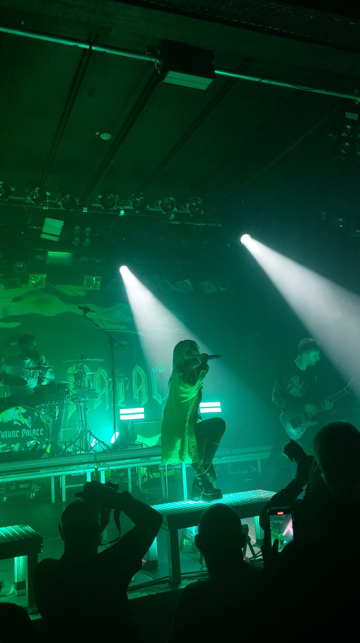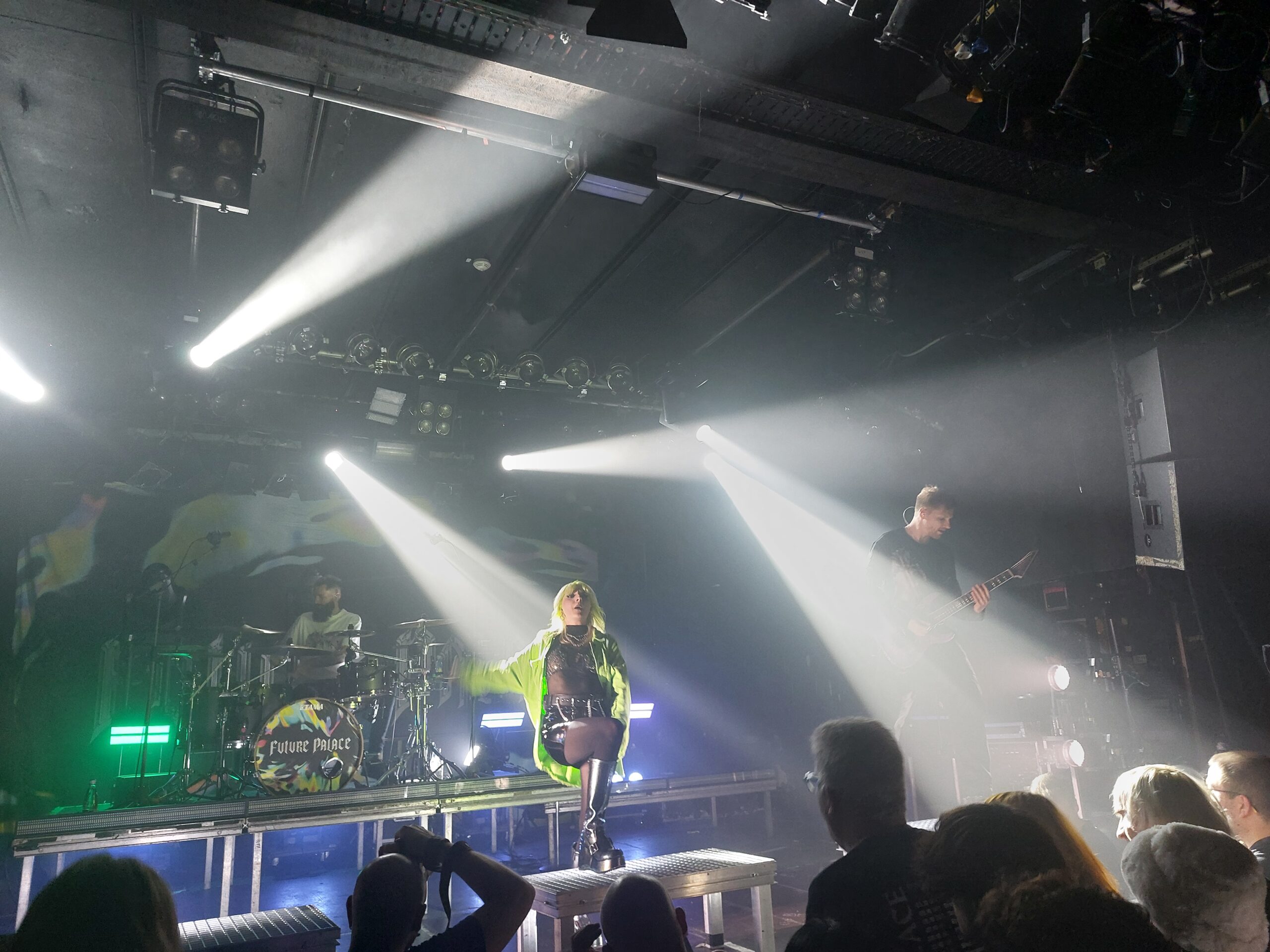 Um Viertel nach Neun war es dann soweit und Future Palace starteten ihre zweite Headlinertour. Passend zum neuen Album „Distortion“, welches im September erschien, wurden vor allem die aktuellen Singles und unbekannte Tracks der dritten Platte gespielt. Aber auch das Sophomore-Werk „Run“ kam mit sechs gespielten Titeln nicht zu kurz. Gesanglich und atmosphärisch besonders war die Akustikeinlage von „Lately“, kurz vor Ende des Konzerts. Hier zeigte Maria Lessing ihre stimmliche Begabung und ließ diese im Vergleich zu den „normalen“ Tracks noch mehr hervortreten. Ein toller Abend mit drei jungen und ambitionierten Bands, deren Zukunft wohl sehr rosig aussehen wird.
