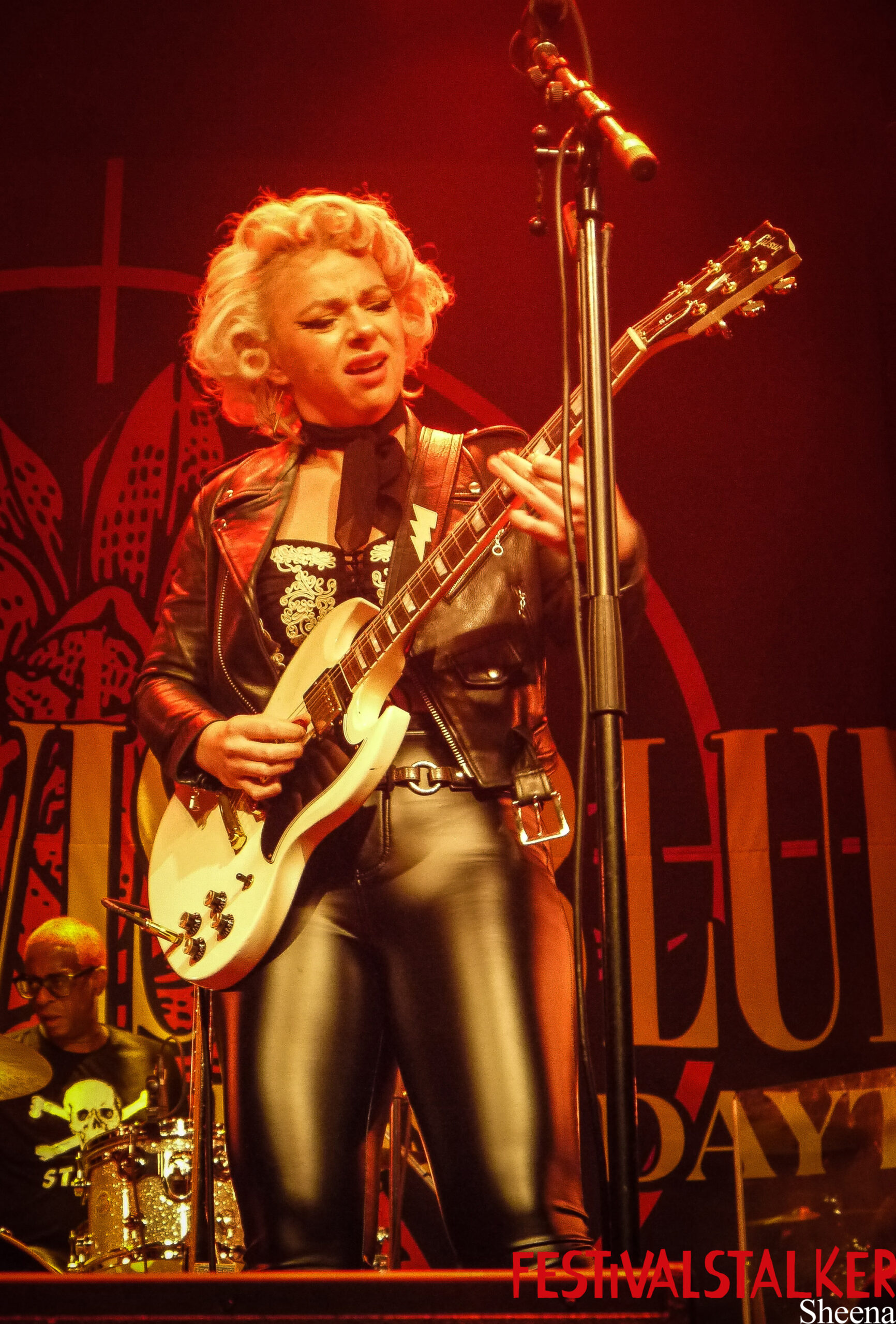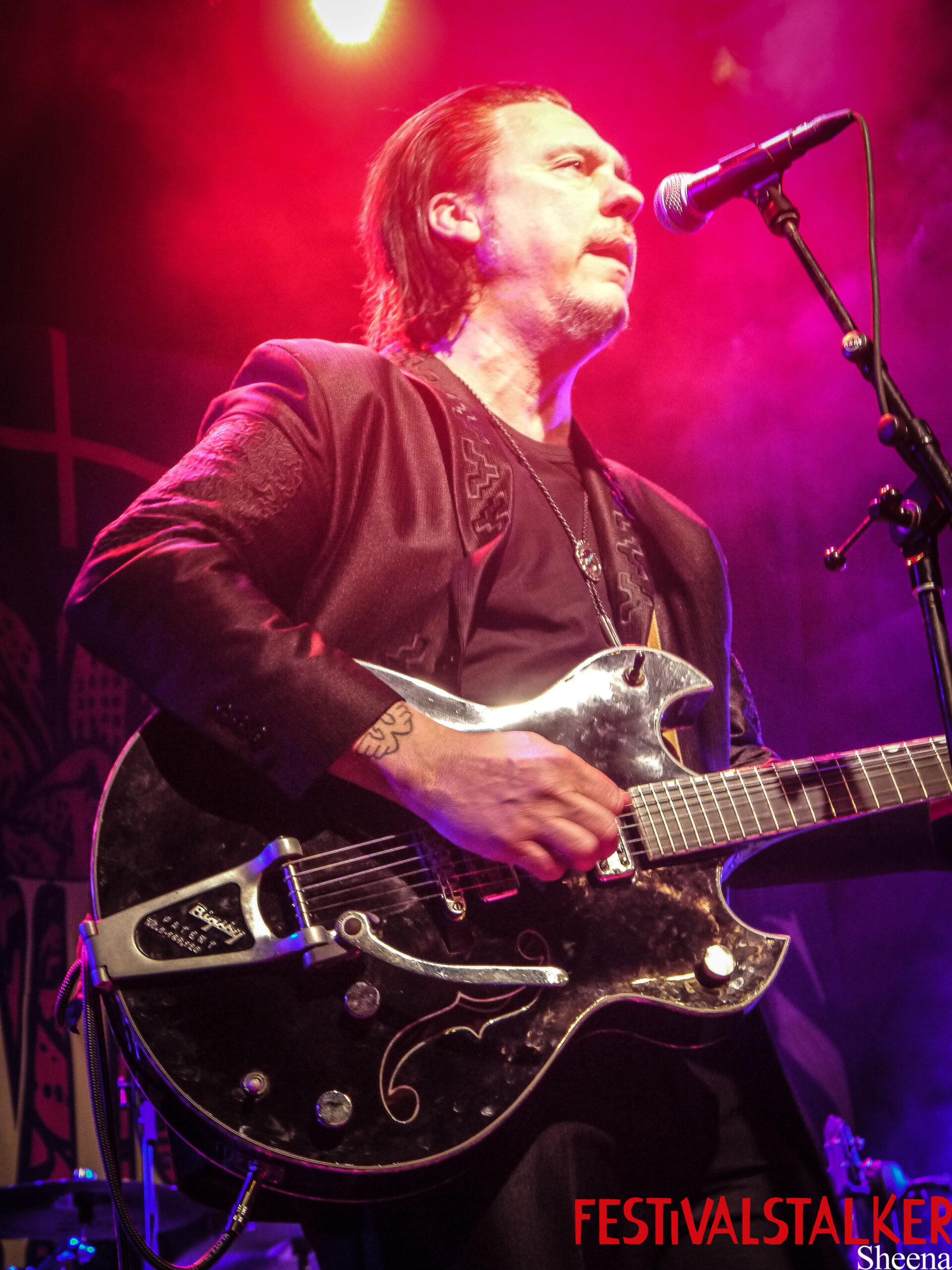 Die erste Überraschung kam auch direkt zu Beginn: keine Vorband! Dafür ein Beginn der vielleicht nicht so gewollt war, aber dafür umso mehr Spannung aufgebaut hat. Denn es wurde erstmal dunkel auf der Bühne und das über mehrere Minuten hinweg. Dann startet das Set mit dem Coversong „Brand New Cadillac“ und direkt als zweiten Song spielen sie bereits ihre aktuelle Single „Deathwish“, welche auch der Vorbote auf das am 19. Mai 2023 erscheinende Album „Deathwish Blues“ ist.