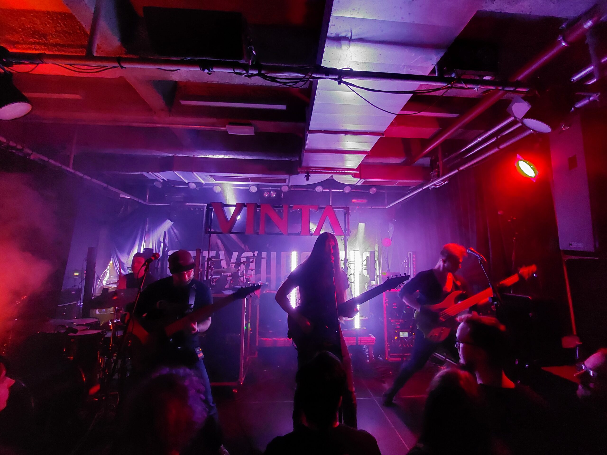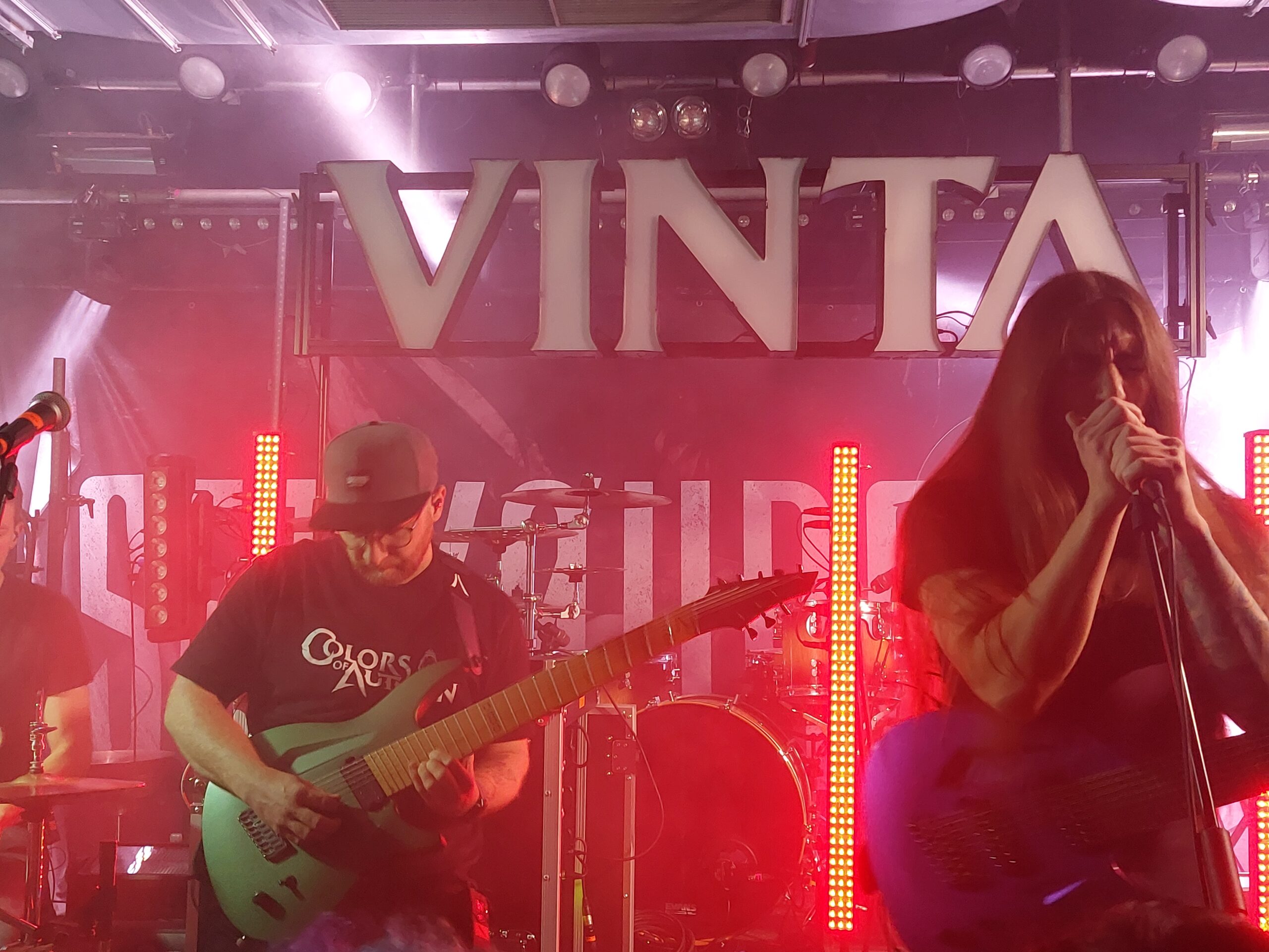 Zur Primetime war es dann soweit und Vinta aus Köln starteten ihr ebenfalls 30 Minuten langes Set. Die deutschsprachigen Tracks der Formation lieferten eine erfrischende Abwechslung, da man solche gerade innerhalb diese Subgenres eher selten zu hören bekommt. Kurz vor Schluss wurde Tokio Hotels „Durch den Monsun“ gecovert und die beiden Main-Acts starteten wegen des Tour-Abschlusses einen Flashmob. Innerhalb des Chaos wurde u.a. das Band-Logo „verschönert“ und „etwas“ Wein auf der Bühne getrunken. Dieser positive Zwischenfall sollte nicht der einzige des Abends bleiben.