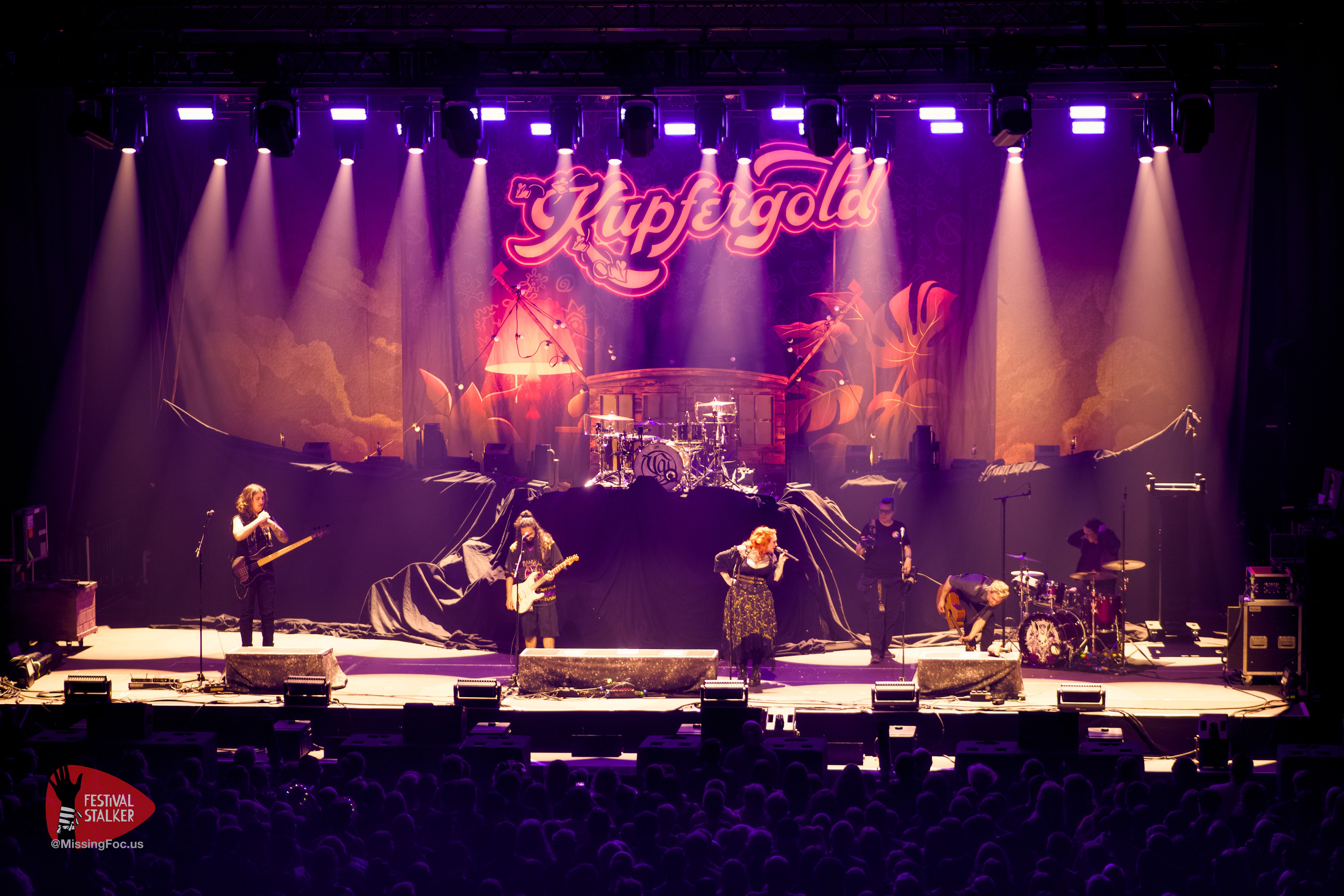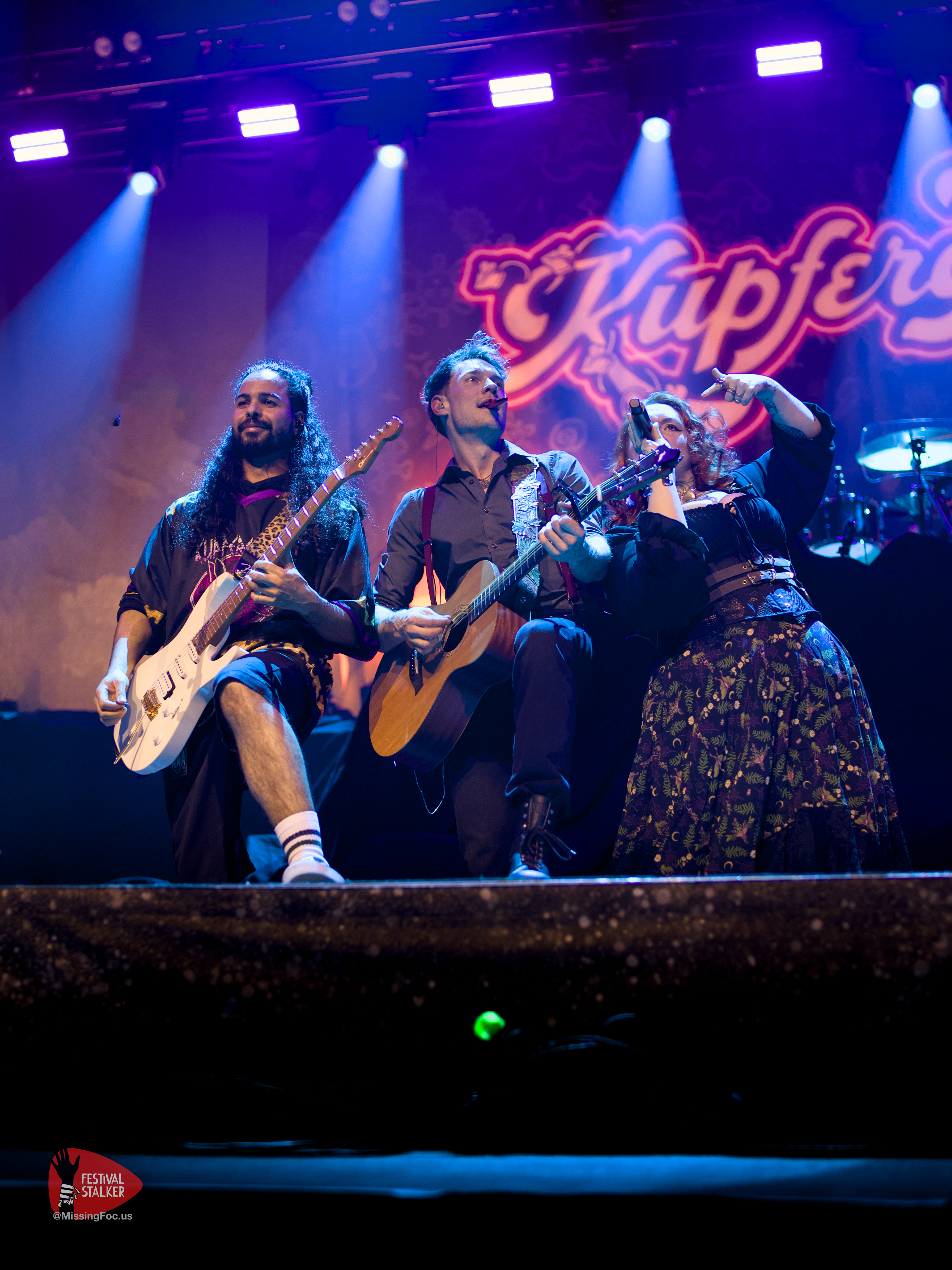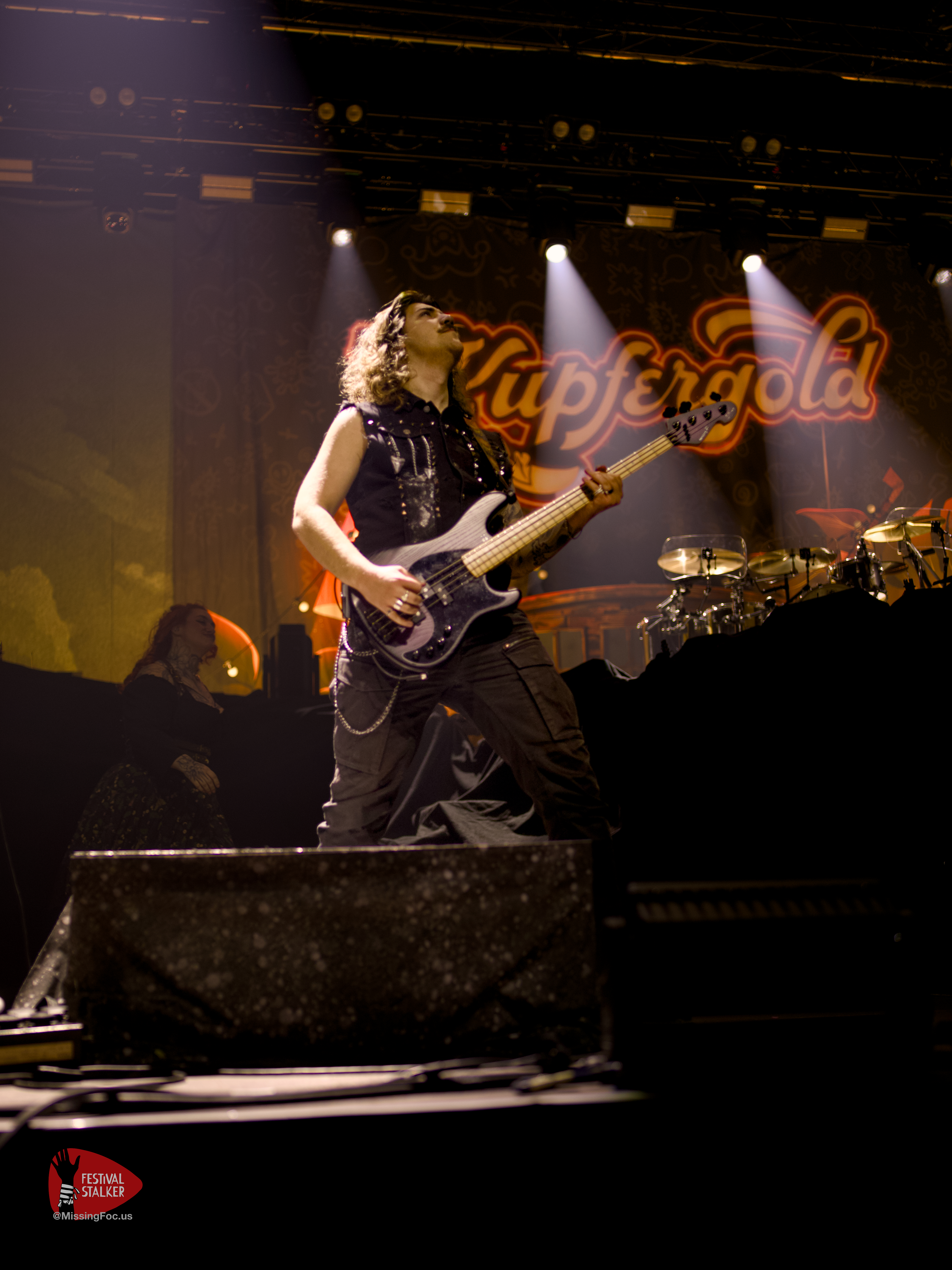 Ruhrpottschnack mit zu weil sehr loser Zunge, trifft auf Mittelalter Folk-Rock. Wie die Sängerin und Frontfrau Bonnie Banks es auch anders gerne nennt: „Assi-Folk„. Nicht ganz pünktlich, um kurz nach 20 Uhr, ging es dann auch los mit der knapp 35 minütigen Show. Kupfergold hatte wenig Probleme das Publikum an sich zu binden weil beide Bands einen ähnlichen musikalischen Stil haben. Nur sind die Lyrics bei Kupfergold wesentlich derber als bei Versengold. Dem Publikum war es egal. Es tobte und gröhlte zu Songs wie „Der Klügere kippt nach“ oder „Und`n Tripper“ lauthals mit. Ein gelungener Start in den Abend.