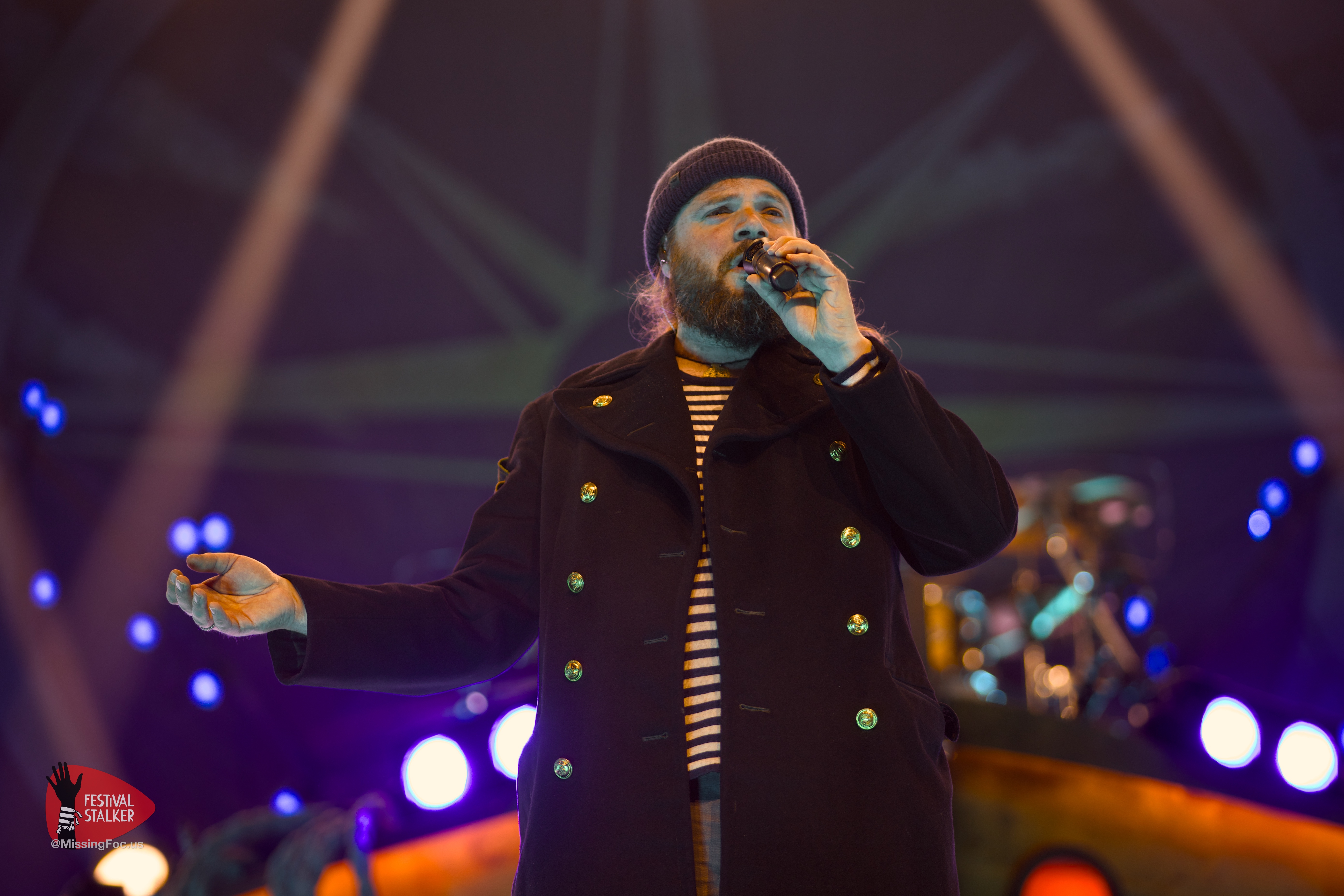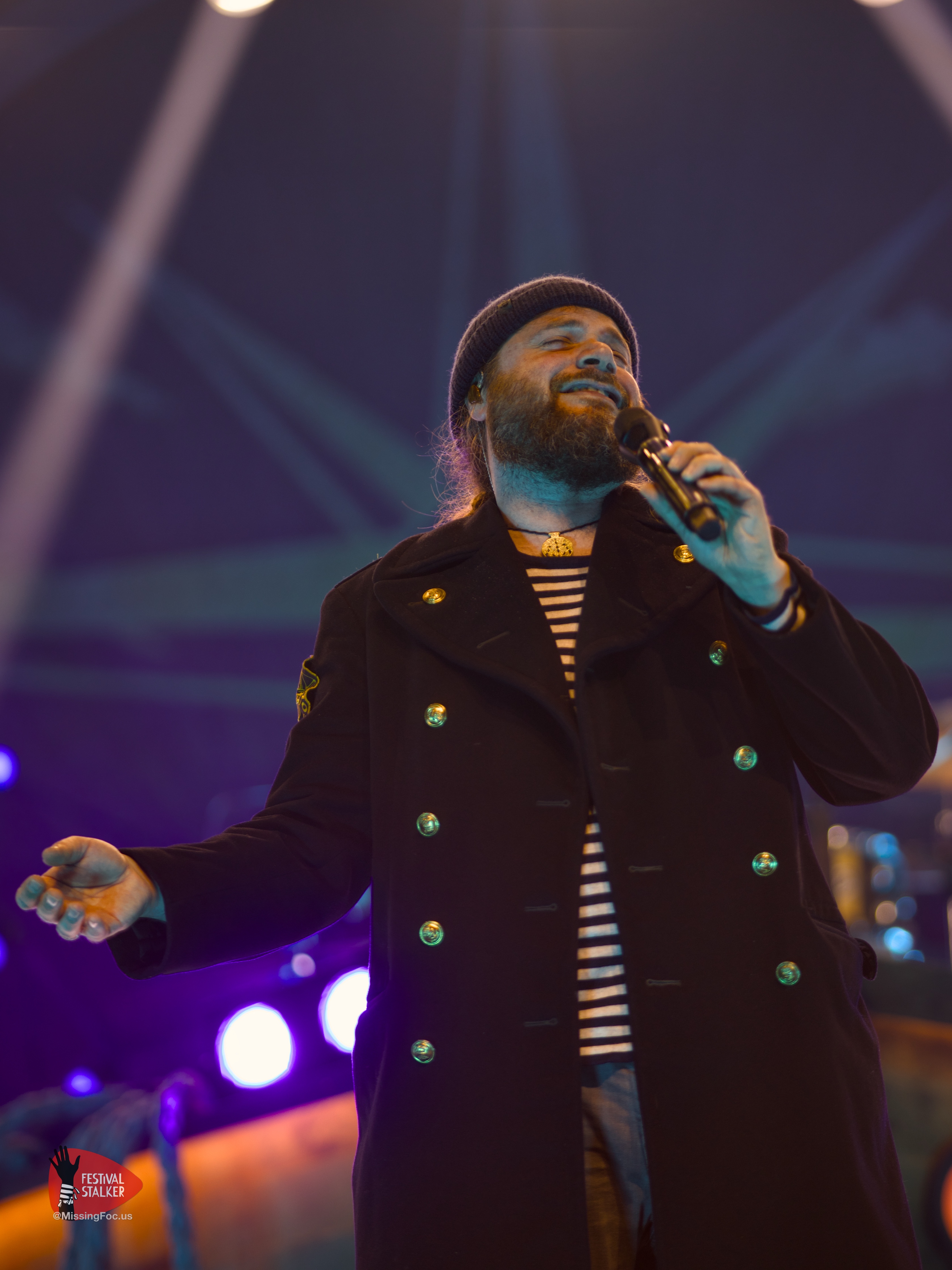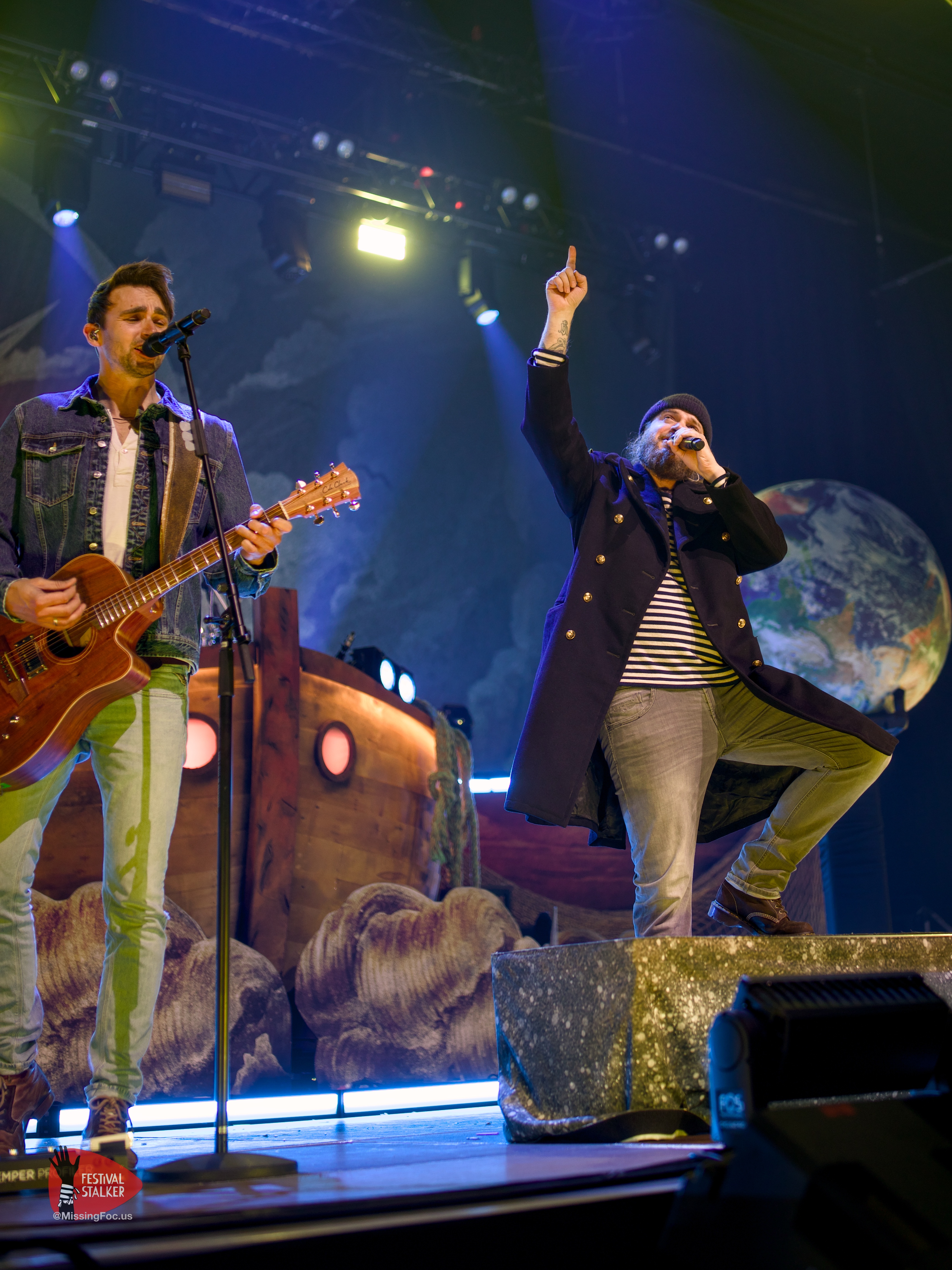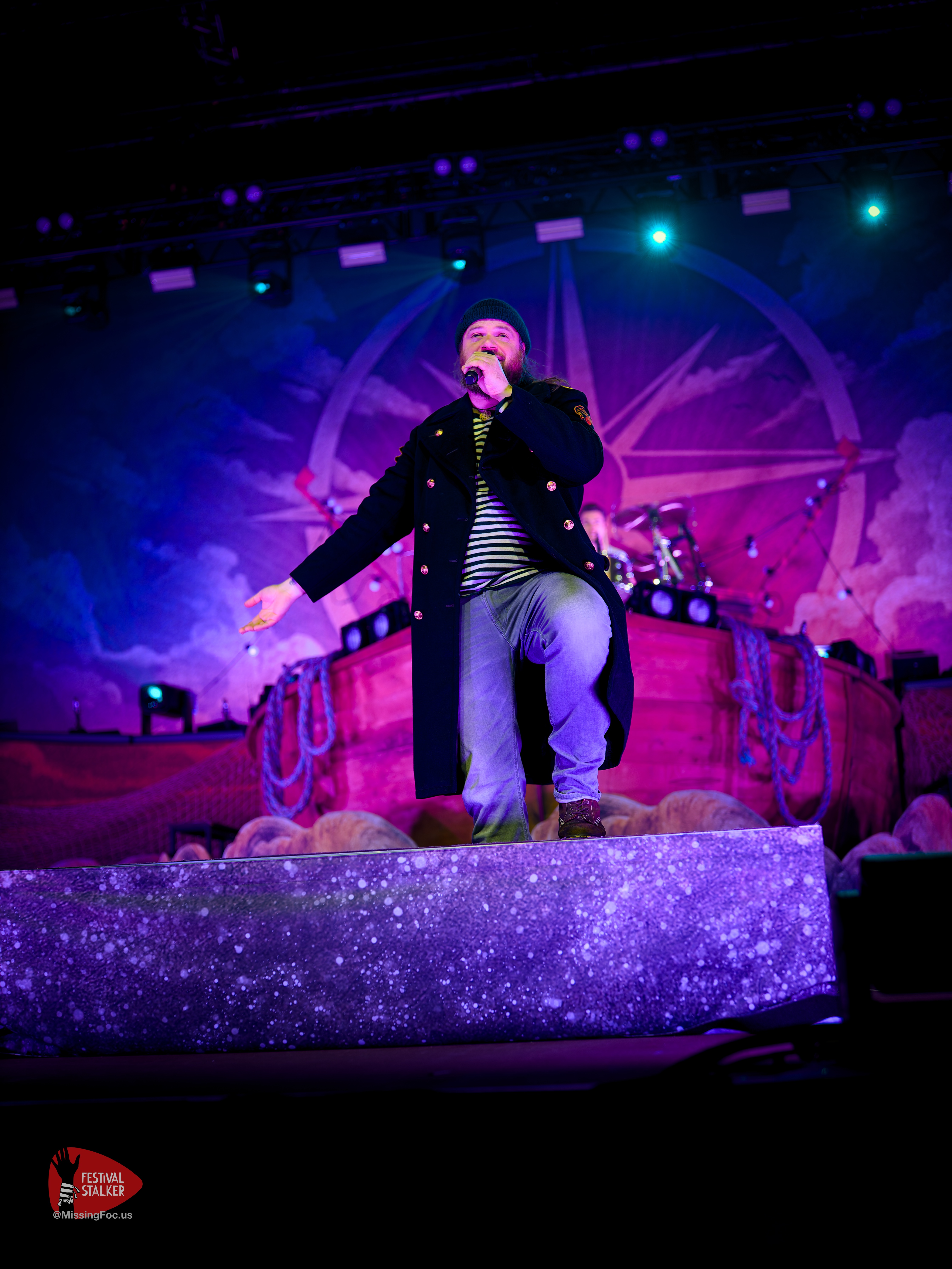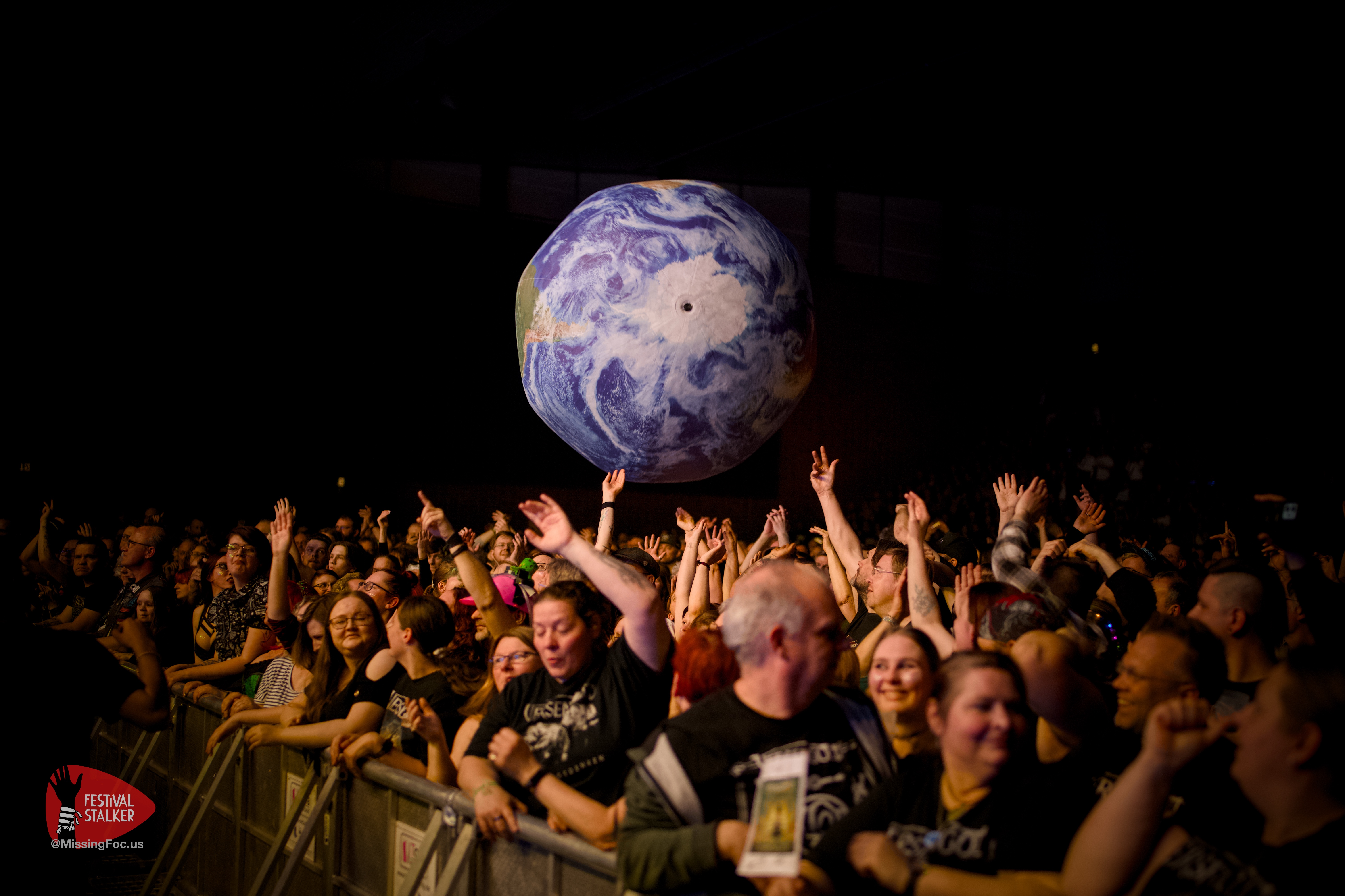 Nach einer kurzen Verschnaufpause sollten Versengold pünktlich um 20.50Uhr die Bühne betreten. Hinter dem großen Versengold-Banner wurde der Opener „der Tag mag kommen“ angespielt. Die Spannung in der Halle war förmlich greifbar und entlud sich schlagartig mit dem Fall des Banners. Kurz darauf konnten wir Fotografen auch in den Graben und mit unserem Job loslegen. Bei dem Song „Der Tag an dem die Götter“ wurde eine riesige aufblasbare Erdkugel auf die Bühne geholt und kurz darauf ins Publikum gestoßen. Wer Versengold kennt, der weiß dass sie sich politisch positionieren, offen sich für demokratische Werte und gegen Rechtsextremismus bekennen. Dieses brachte Versengold auch mit dem Song „falscher Leuchtturm“ zum Ausdruck.
