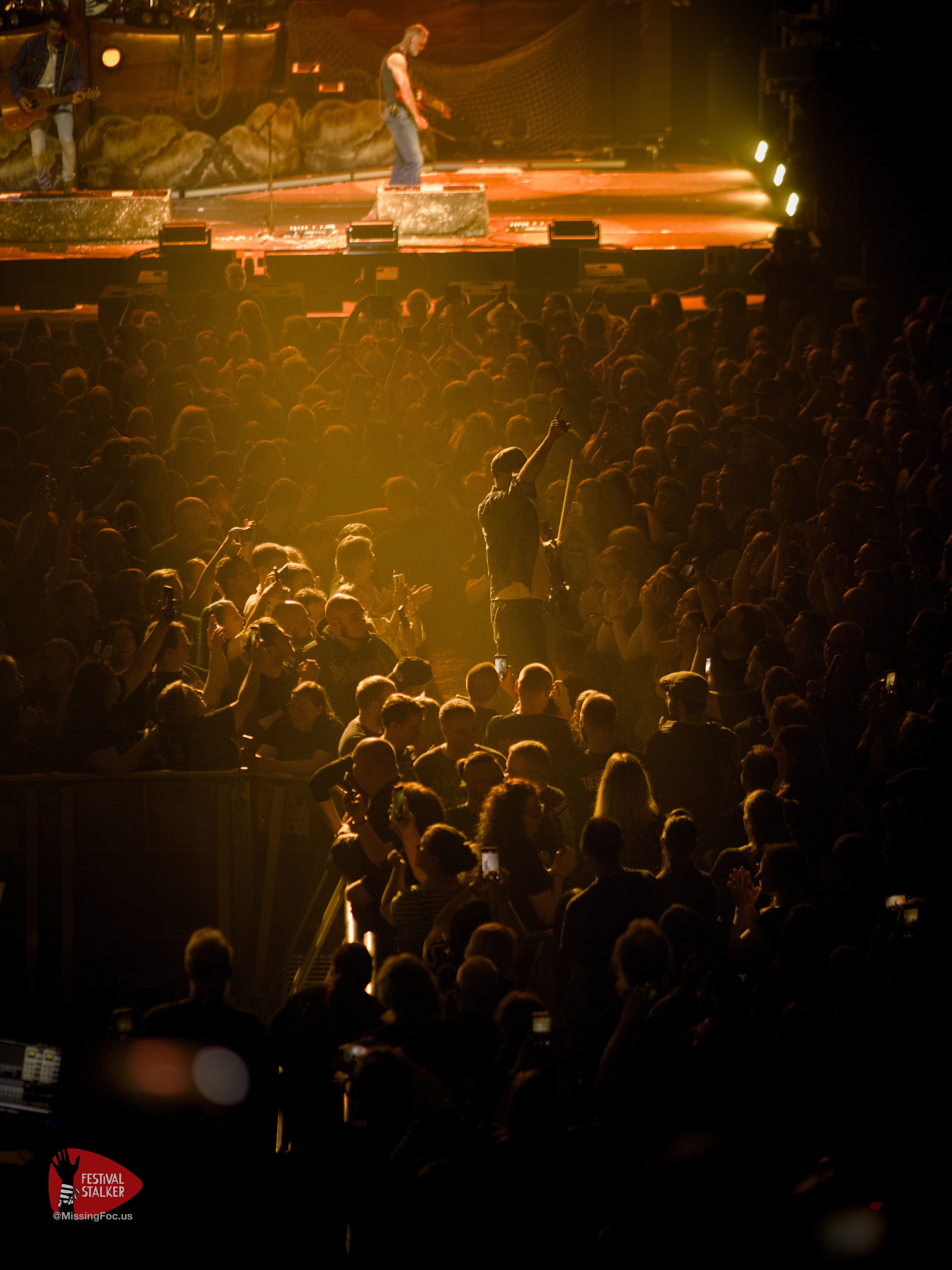 Etwas norddeutsch störrisch verhielt sich Hannover bei dem Versuch eines Line Dance. Das hat leider nicht ganz so gut funktioniert. Was später wieder mehr als funktioniert hatte, war das kollektive rudern zu „Eingenordet„. Egal ob auf dem Parket oder auf der Tribüne, es wurde gerudert was das Zeug hielt. Auf Klopapier war die Lichtkonstruktion der Halle und ich nicht vorbereitet, die Fans scheinbar . Klopapier blieb an den vielen Streben hängen. Das Parket hat sich das Klopapier gegenseitig hin und her geworfen. Dieses war mir tatsächlich ein Foto wert. Der Song „Klopapier“ ist übrigens allen Menschen gewidmet die von oben nach unten treten.