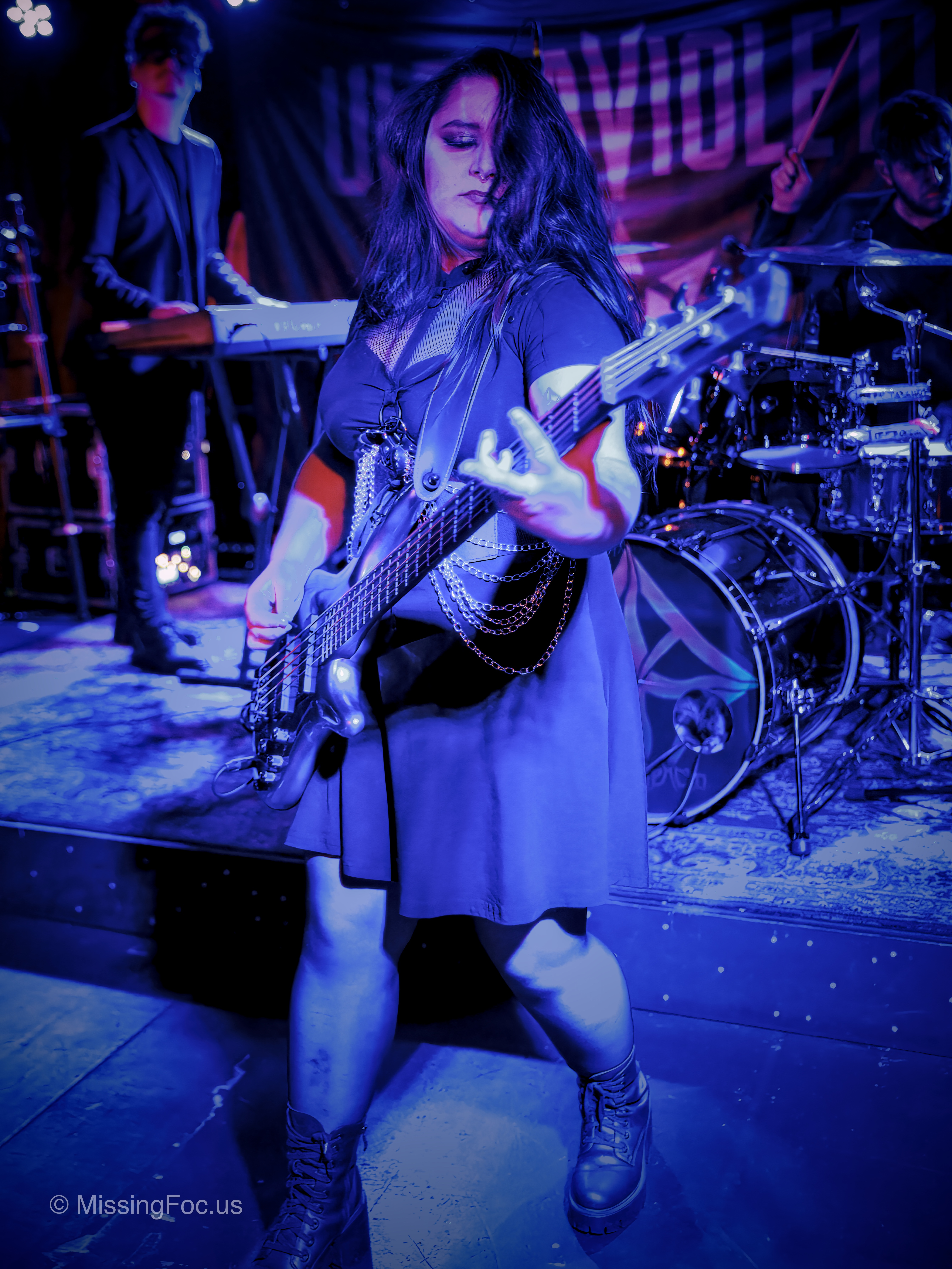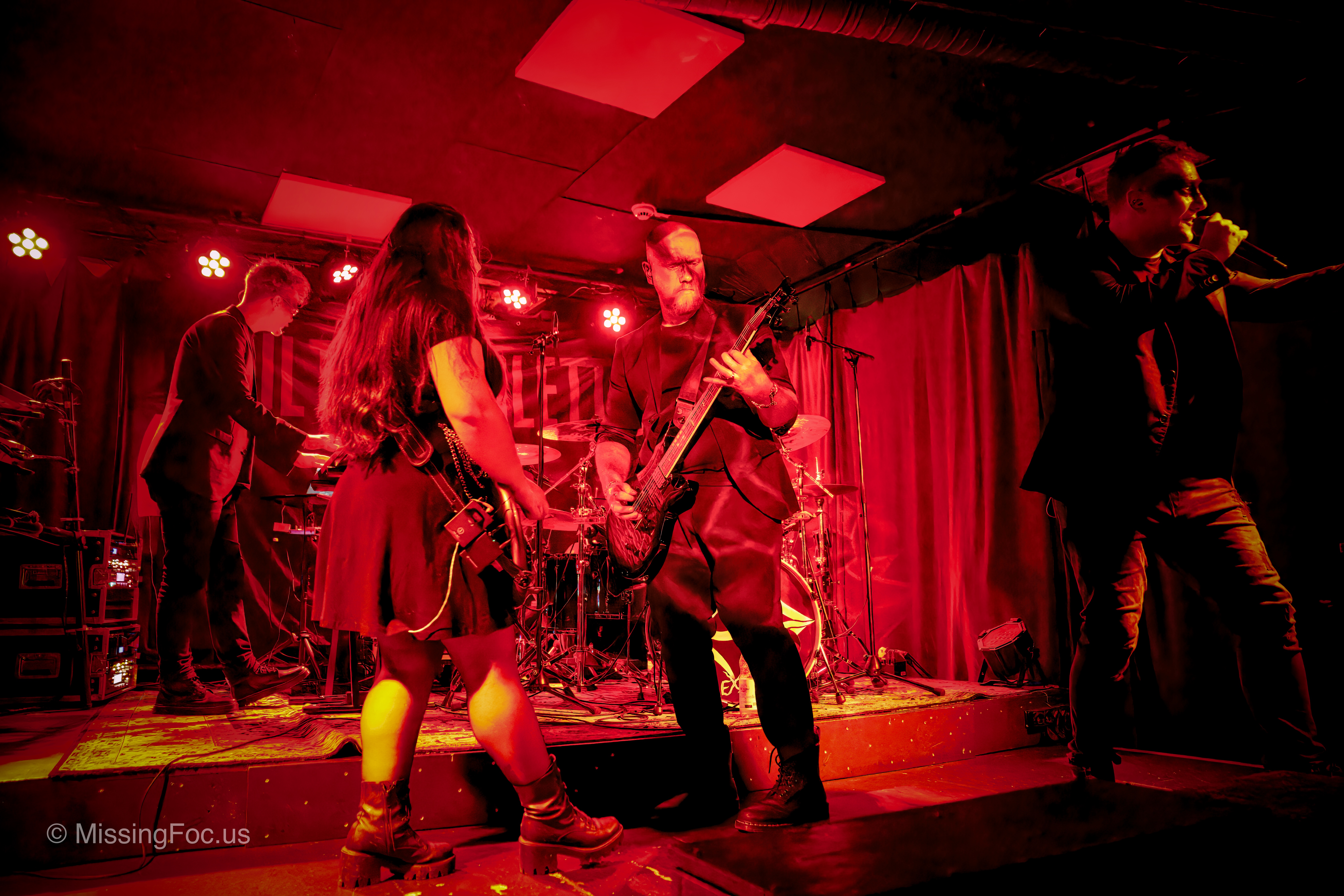 Nach einer kurzen Umbaupause betrat Ultraviolett die Bühne – und brachte mit ihrem Konzept rund um die sieben Todsünden eine völlig andere Energie in den Raum. Ihre Mischung aus Dark Rock und Einflüssen der Neuen Deutschen Härte entfaltet live eine ganz eigene Sogwirkung. Jedes Stück widmet sich einer der Todsünden und wird mit theatralischen Elementen untermalt. Die Band versteht es, musikalische Wucht und visuelle Inszenierung zu verbinden: Licht, Gestik und Bühnenpräsenz formen eine düstere Atmosphäre, die das Publikum sofort in ihren Bann zog. Besonders eindrücklich war die Art, wie Ultraviolett zwischen aggressiven, stampfenden Passagen und ruhigen, fast bedrückenden Momenten wechselte. So wirkten ihre Songs nicht nur wie Kompositionen, sondern wie kurze, dramatische Szenen.