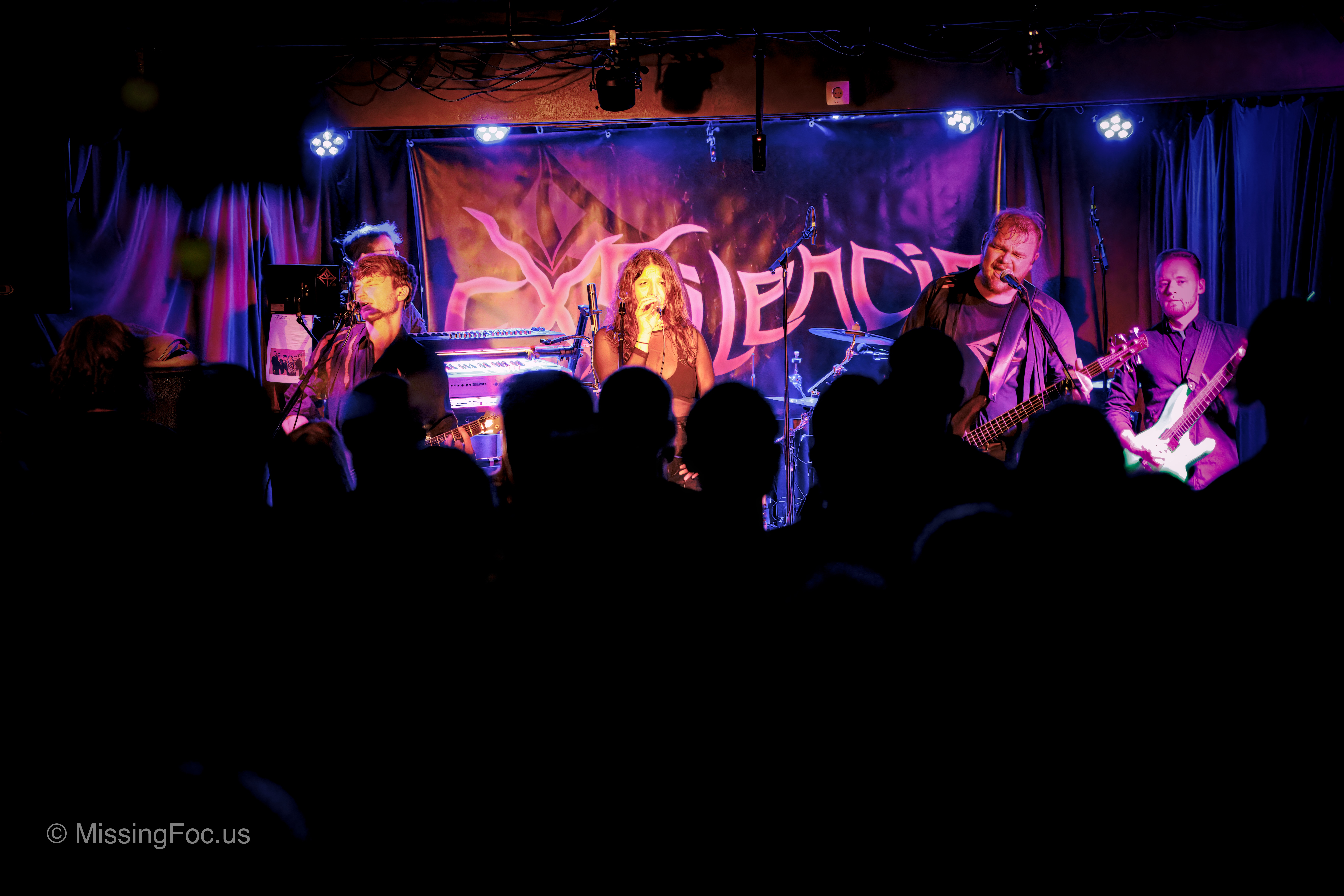 Den Abschluss bildeten ExSilencio, die Bremer Progressive-Metal-Formation, die mit ihrer technischen Präzision und ihrem frischen Sound ein echtes Highlight setzte. Die sechs Mitglieder präsentierten eine Mischung aus melodischer Raffinesse, kräftigen Gitarrenriffs und atmosphärischen Keyboardflächen. Besonders Sängerin Emma beeindruckte mit einer starken, klaren Stimme, die sowohl in druckvollen Parts als auch in ruhigeren Passagen glänzte. Ihre aktuellen Singles „Electric“ und „The Delusion“ sorgten für Begeisterung und rundeten ein Set ab, das sich zwischen Härte, Emotion und spielerischer Virtuosität bewegte.